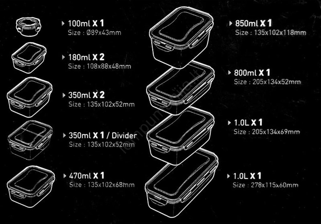 11 vnt. maisto laikymo indelių rinkinys LOCK | Lempumanija