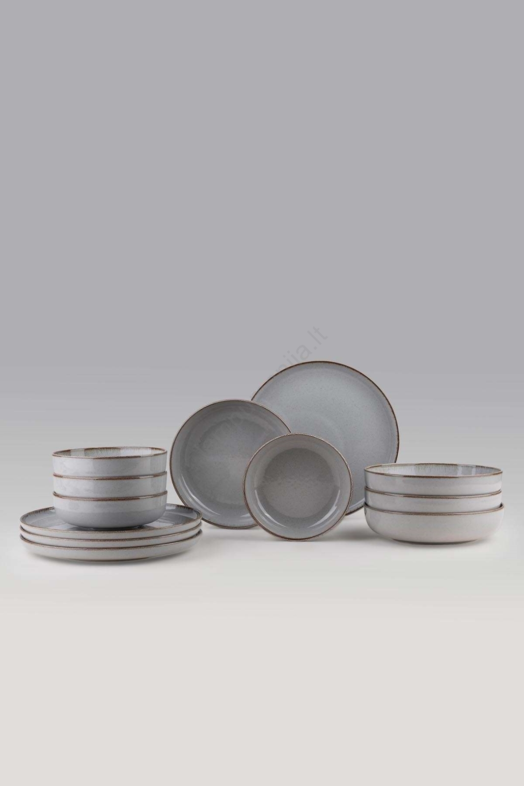 12 dalių stalo indų rinkinys, pilkas, porcelianinis | Lempumanija