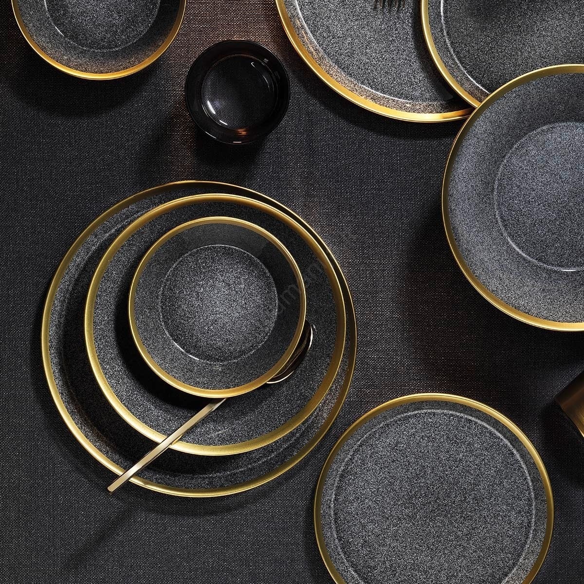16 dalių stalo indų rinkinys antracitas/auksinė/porcelianas | Lempumanija