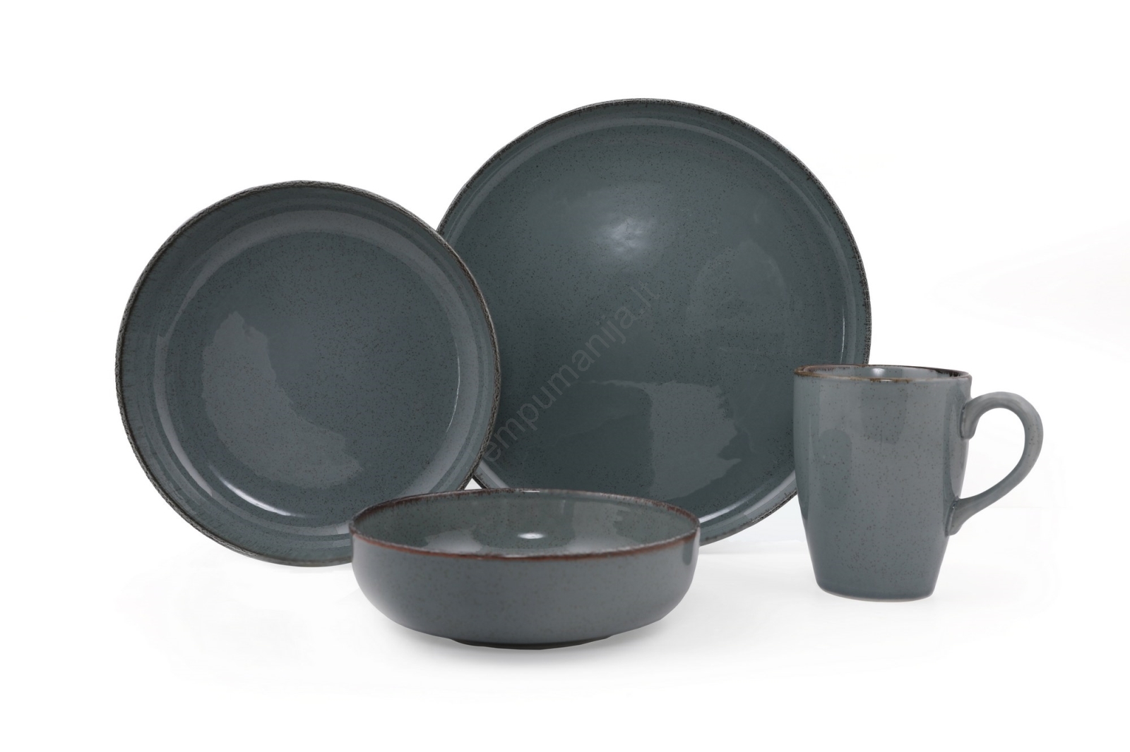 16 dalių valgomojo indų komplektas, pilkas/porcelianas | Lempumanija