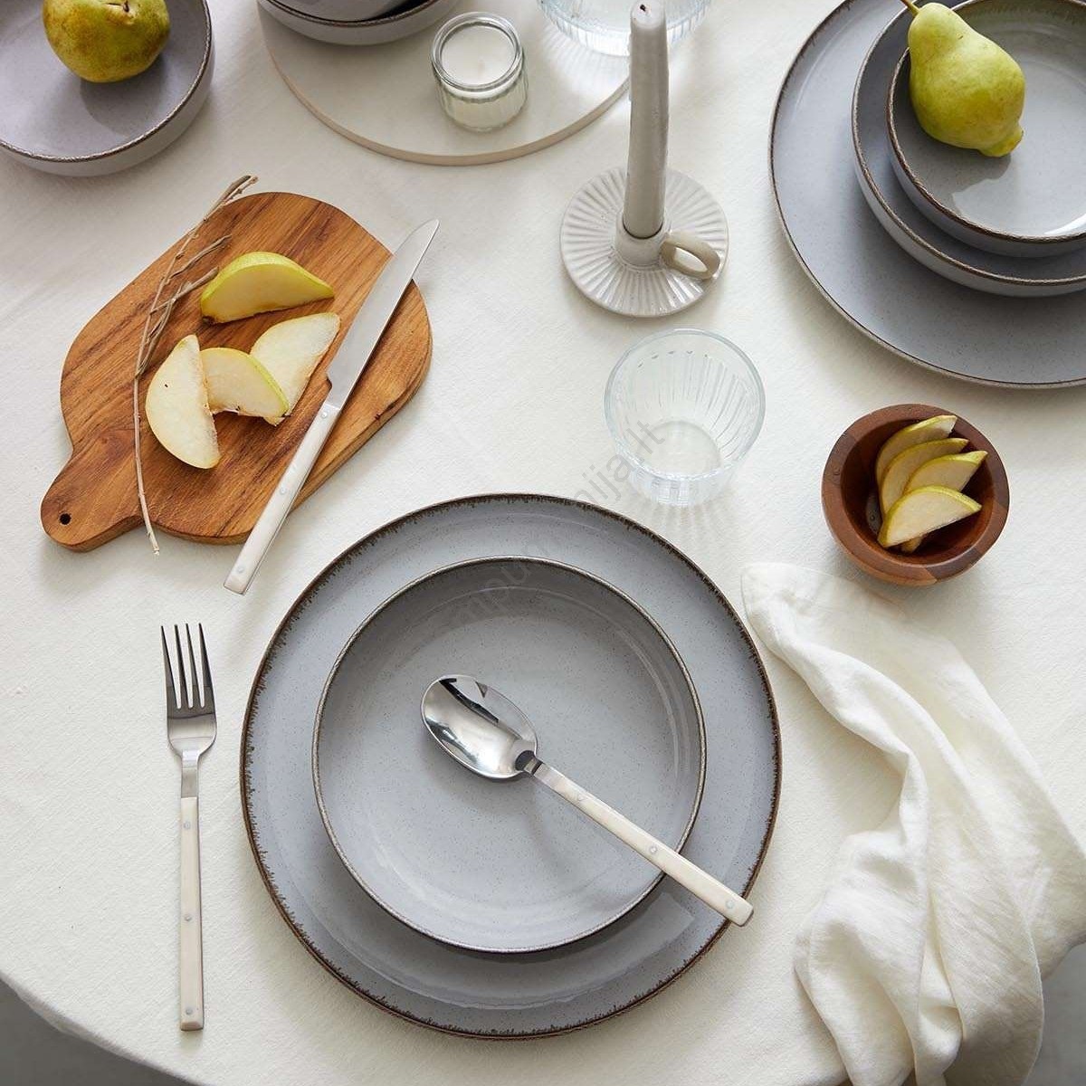 18 dalių indų rinkinys, pilkos spalvos, iš porceliano | Lempumanija