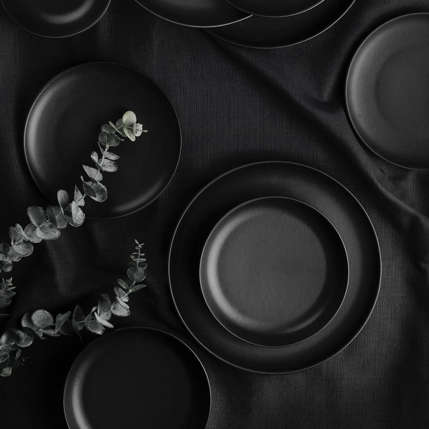 18 dalių stalo indų rinkinys, juodos spalvos / porcelianas | Lempumanija