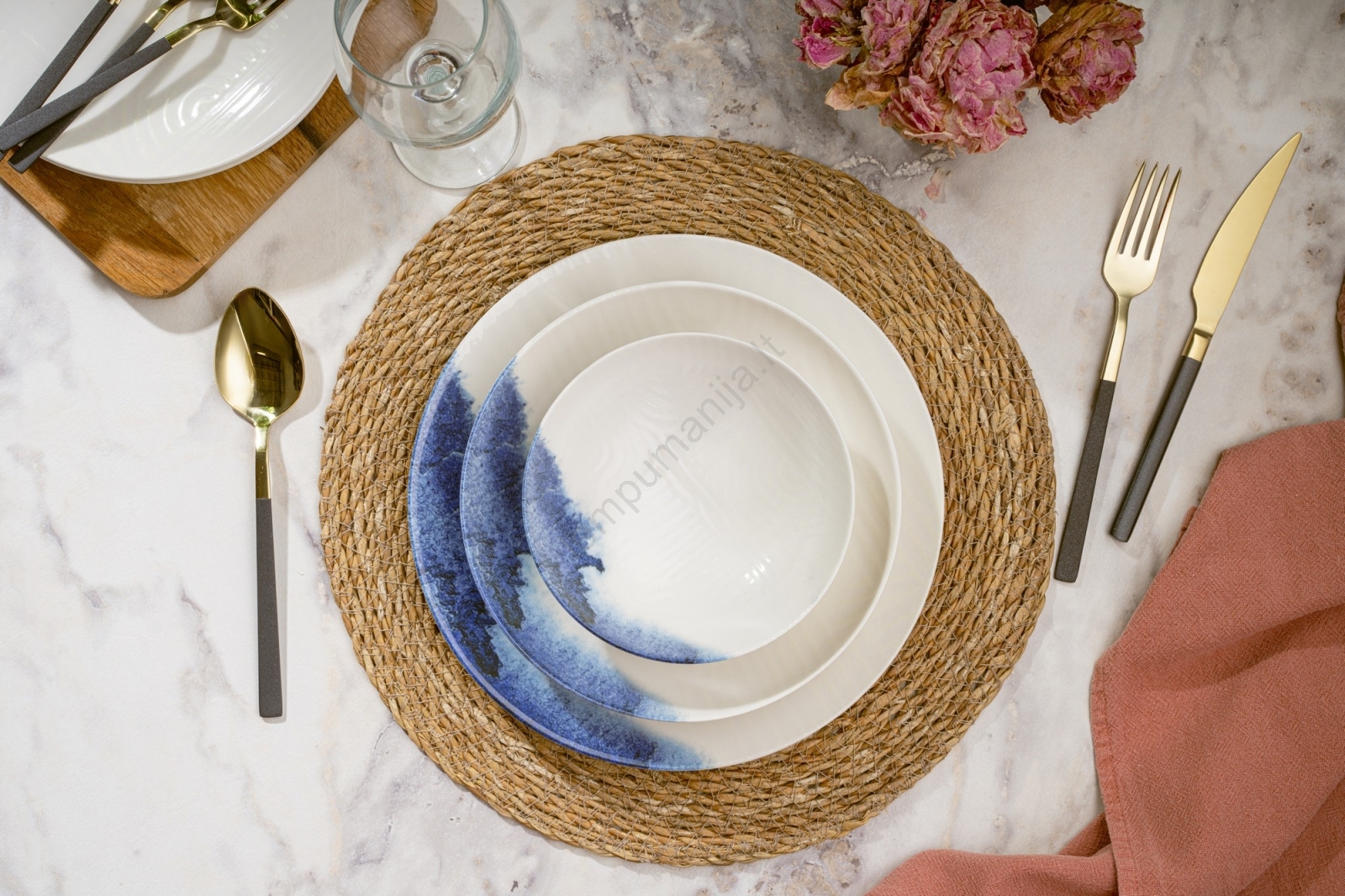 Valgomojo indų rinkinys, 24 vnt., kreminė/mėlyna, porcelianas | Lempumanija