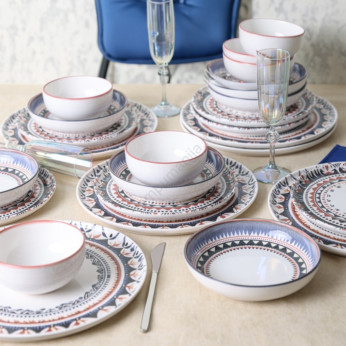 24 dalių įvairiaspalvis/akmens masės indų rinkinys | Lempumanija