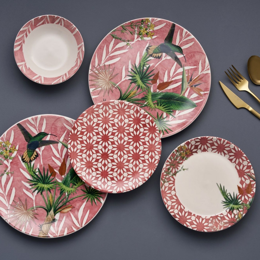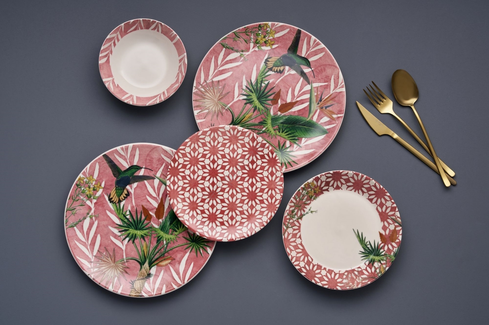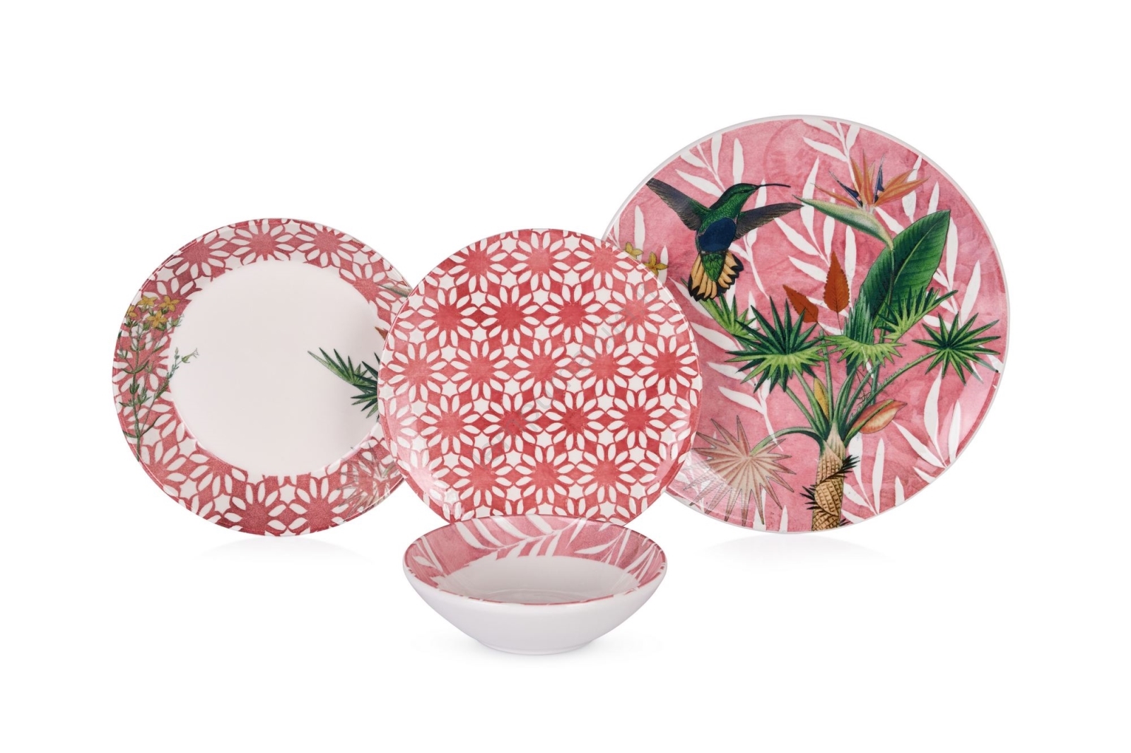 24 dalių keraminis indų rinkinys — raudona / žalia / balta