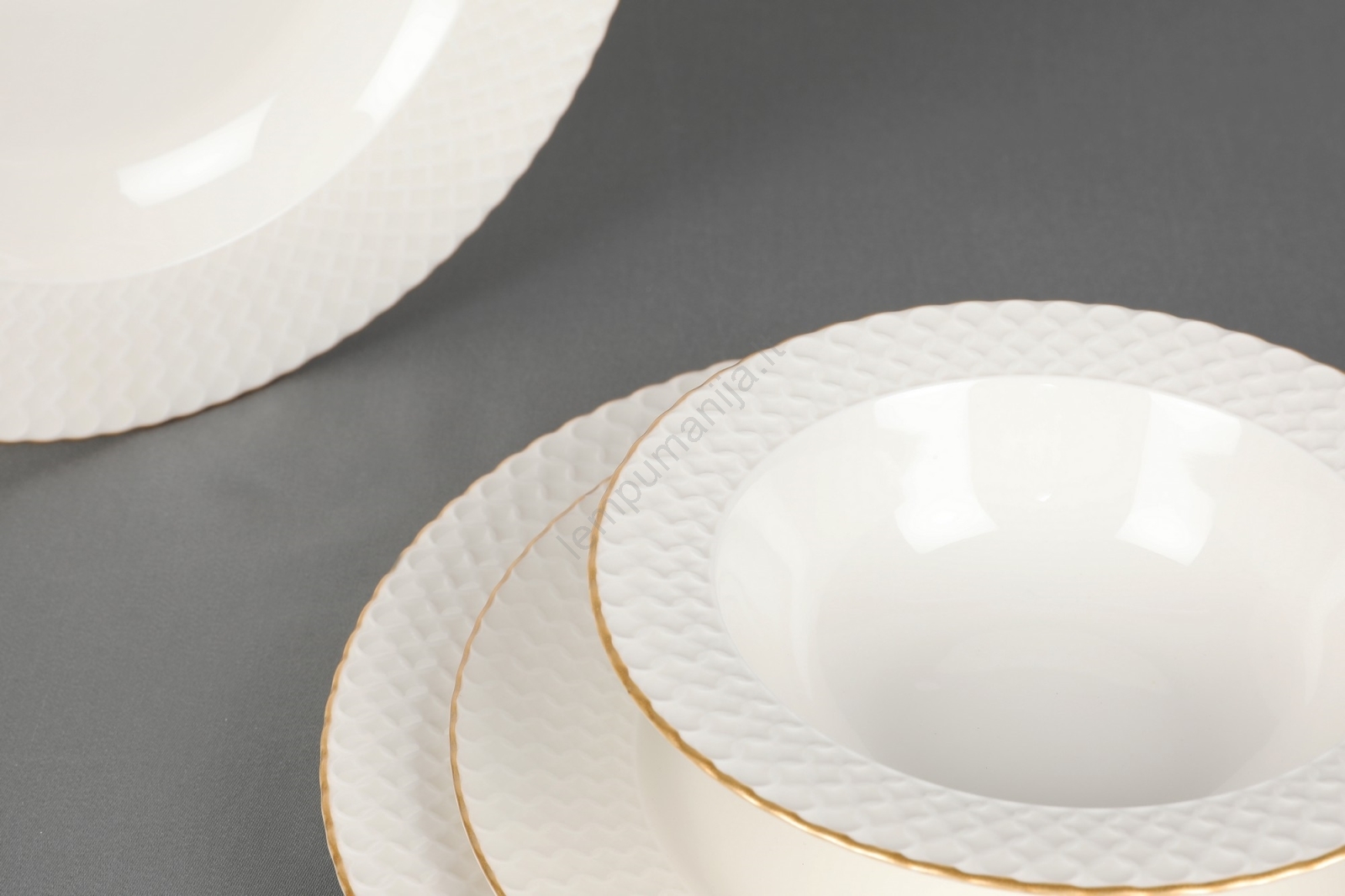 24 dalių stalo indų rinkinys, baltas/auksinis, porcelianas | Lempumanija