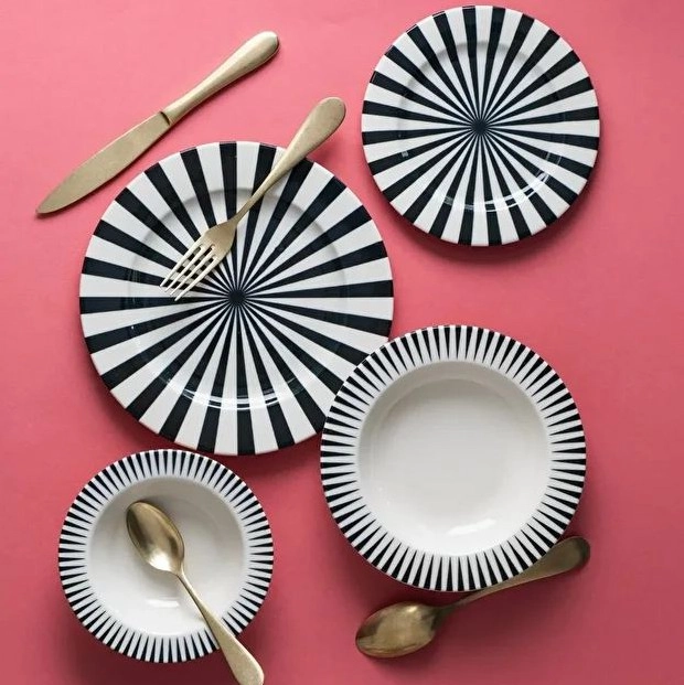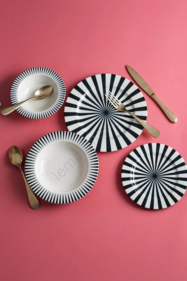 24 dalių stalo indų rinkinys — baltas/juodas/porcelianinis