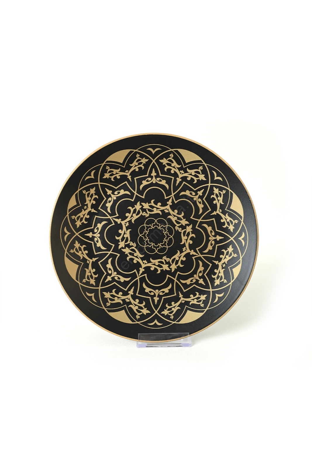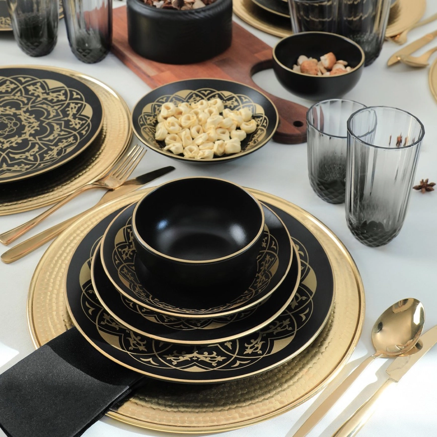 24 dalių stalo indų rinkinys — juodos ir auksinės spalvos, keramika | Lempumanija