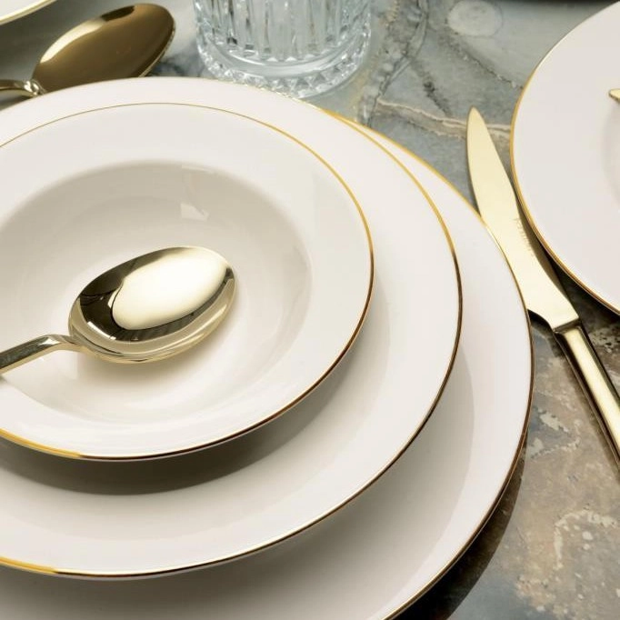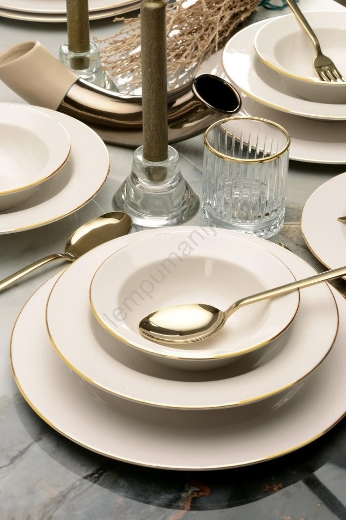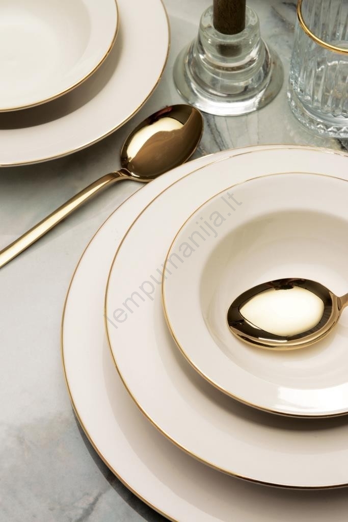 24 dalių stalo indų rinkinys, kreminis/auksinis/porcelianinis