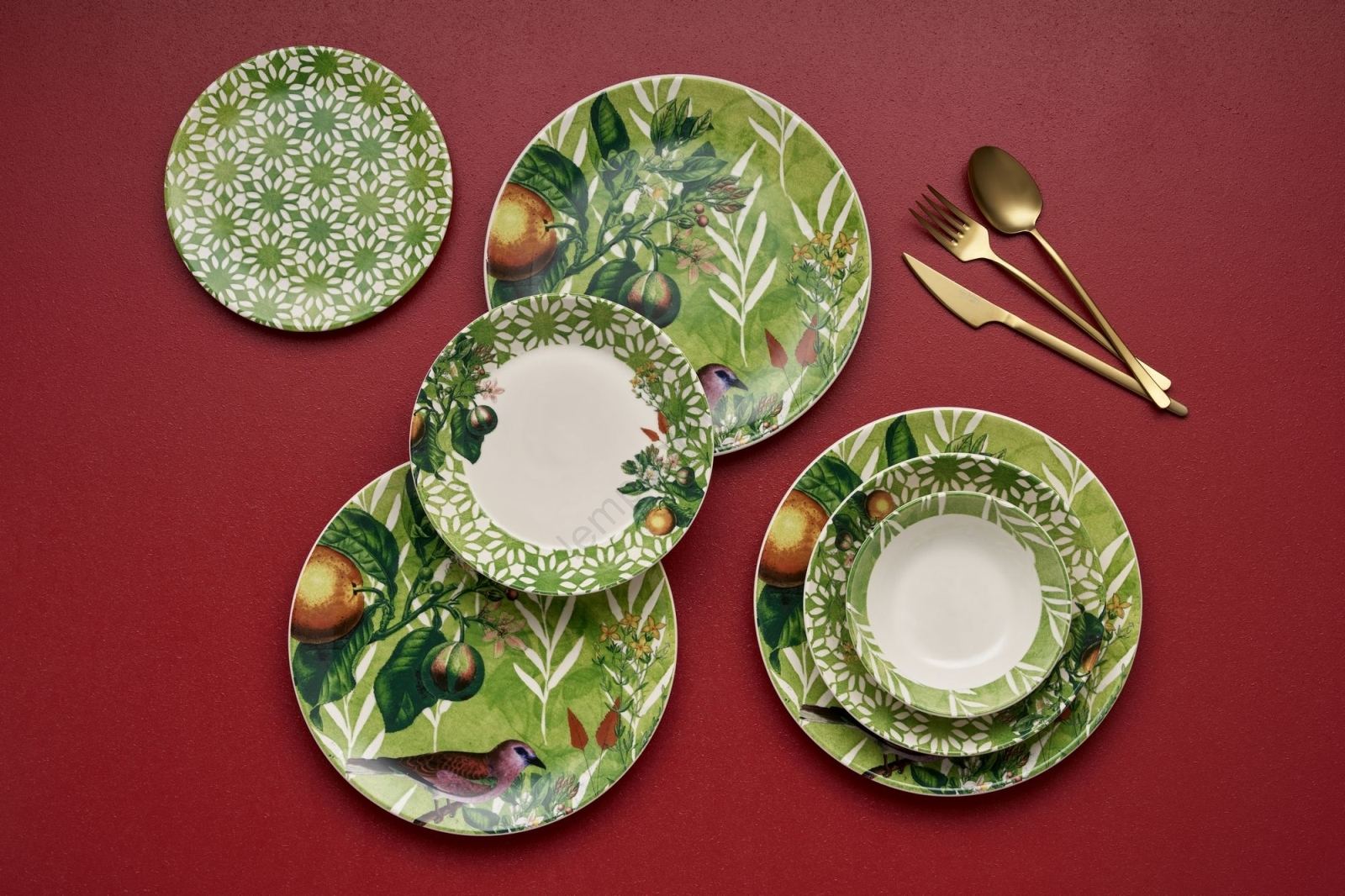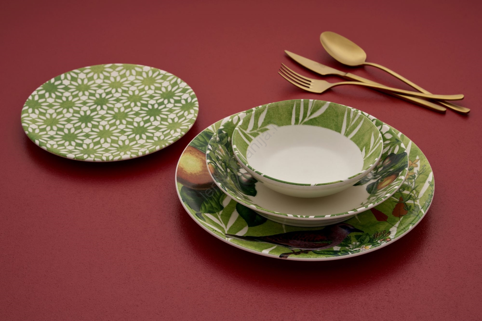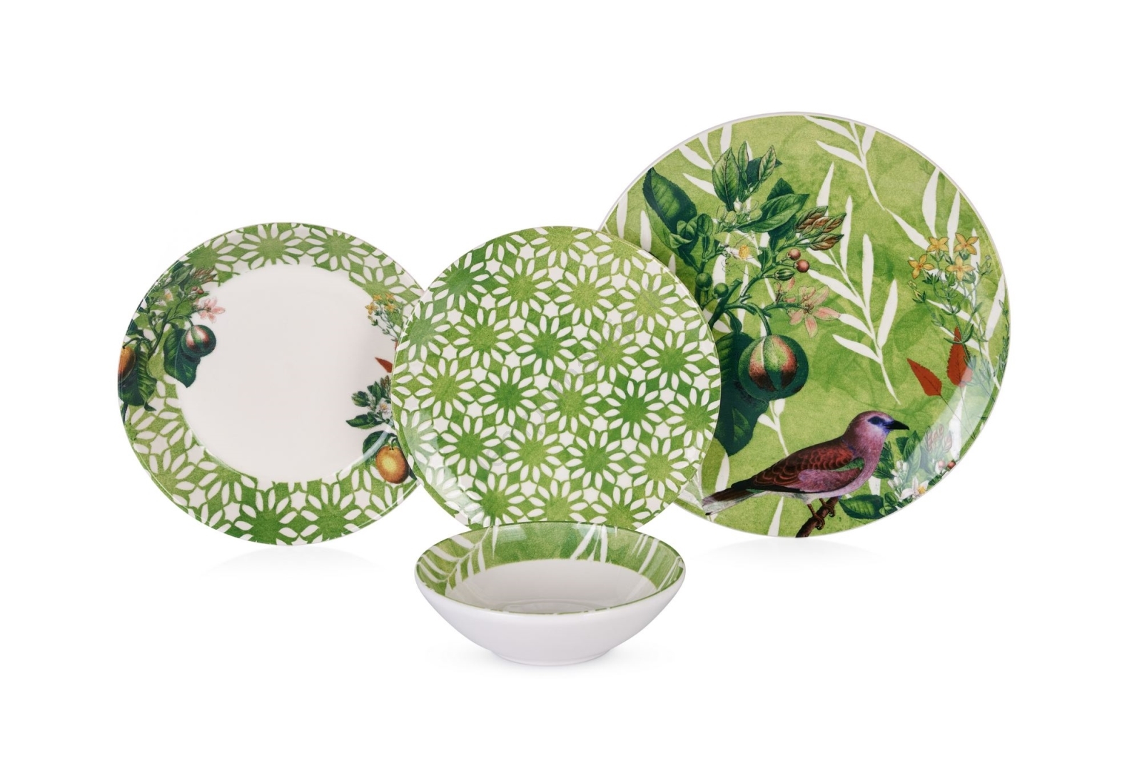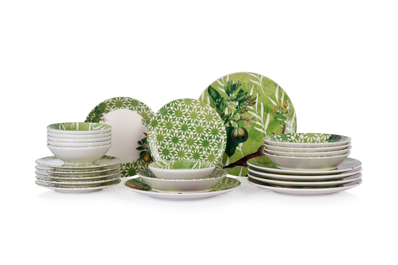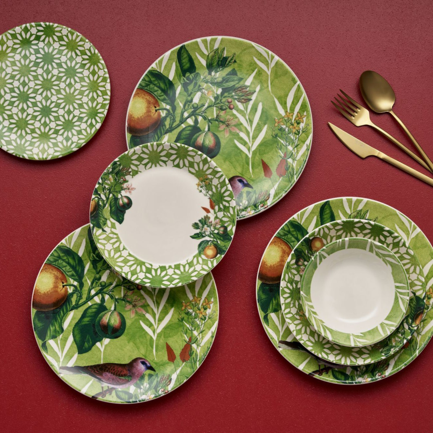 24 dalių stalo indų rinkinys žalia/balta/keramika