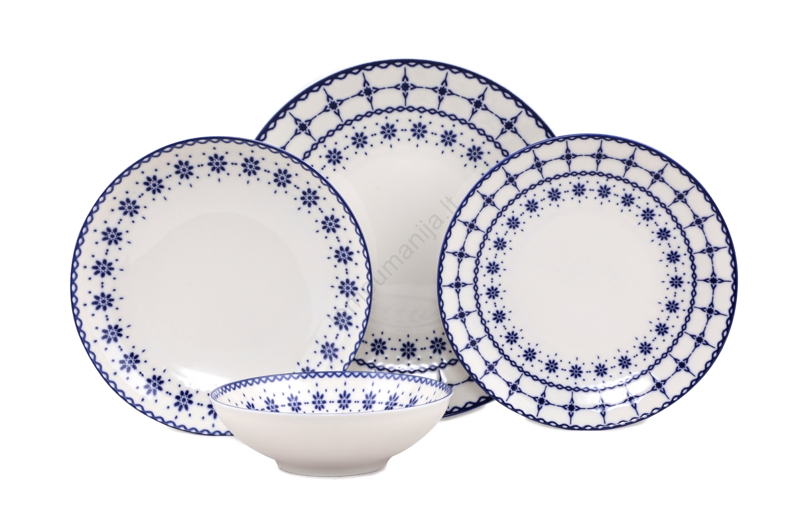 24 dalių valgomojo indų rinkinys, baltas/mėlynas, porcelianas | Lempumanija