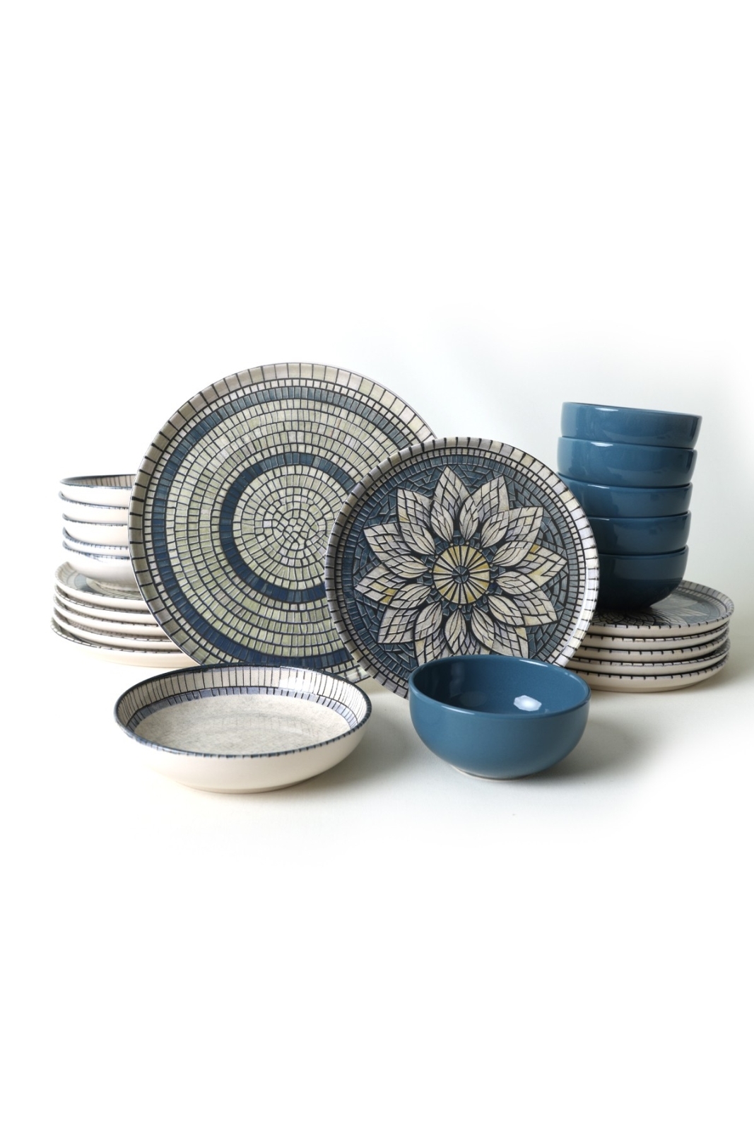 24 vnt. stalo indų rinkinys mėlynas/kreminis/akmens masės