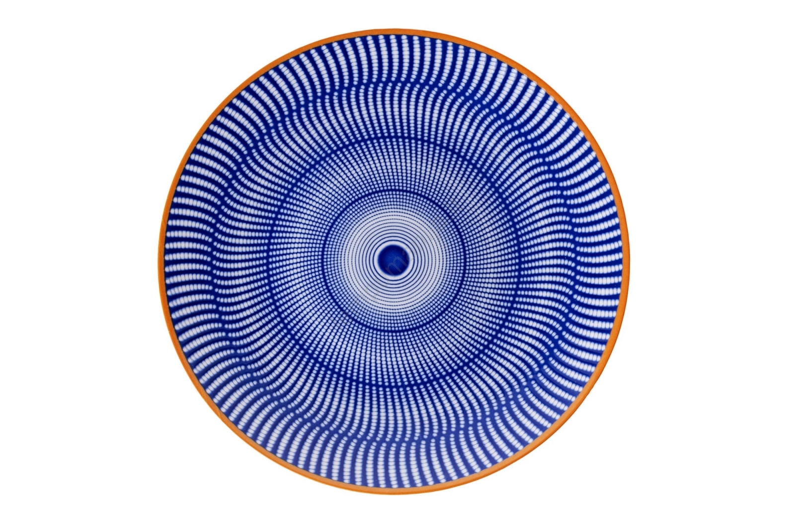 24 vnt. stalo indų rinkinys — mėlynas/oranžinis, pagamintas iš porceliano | Lempumanija