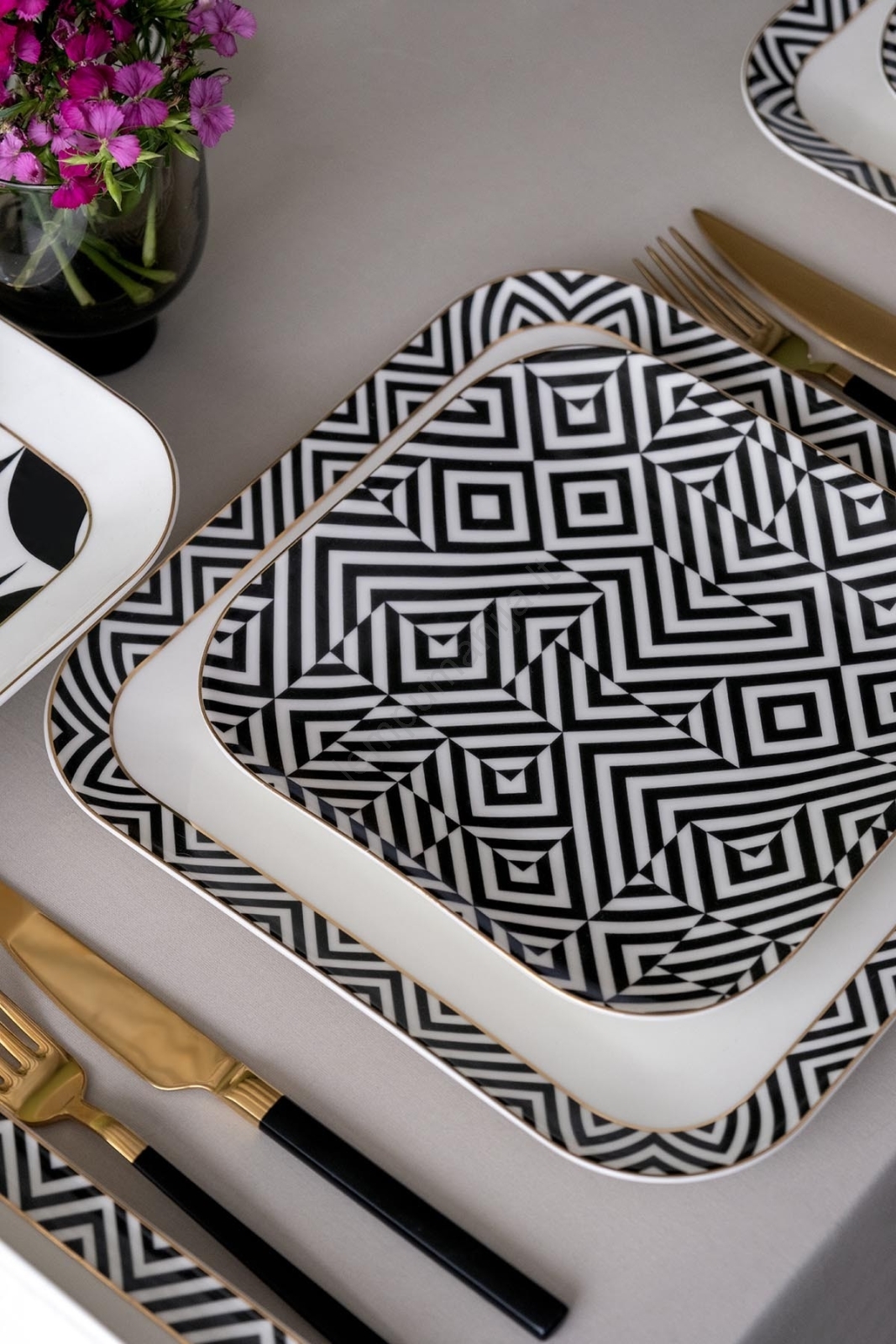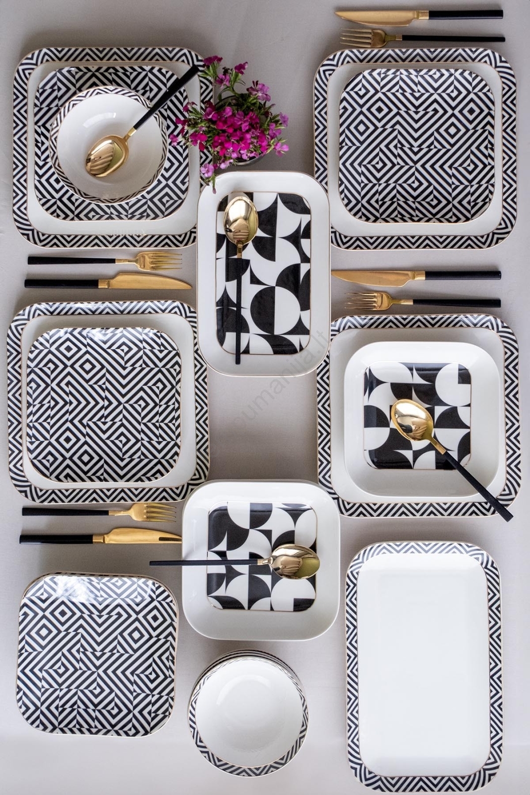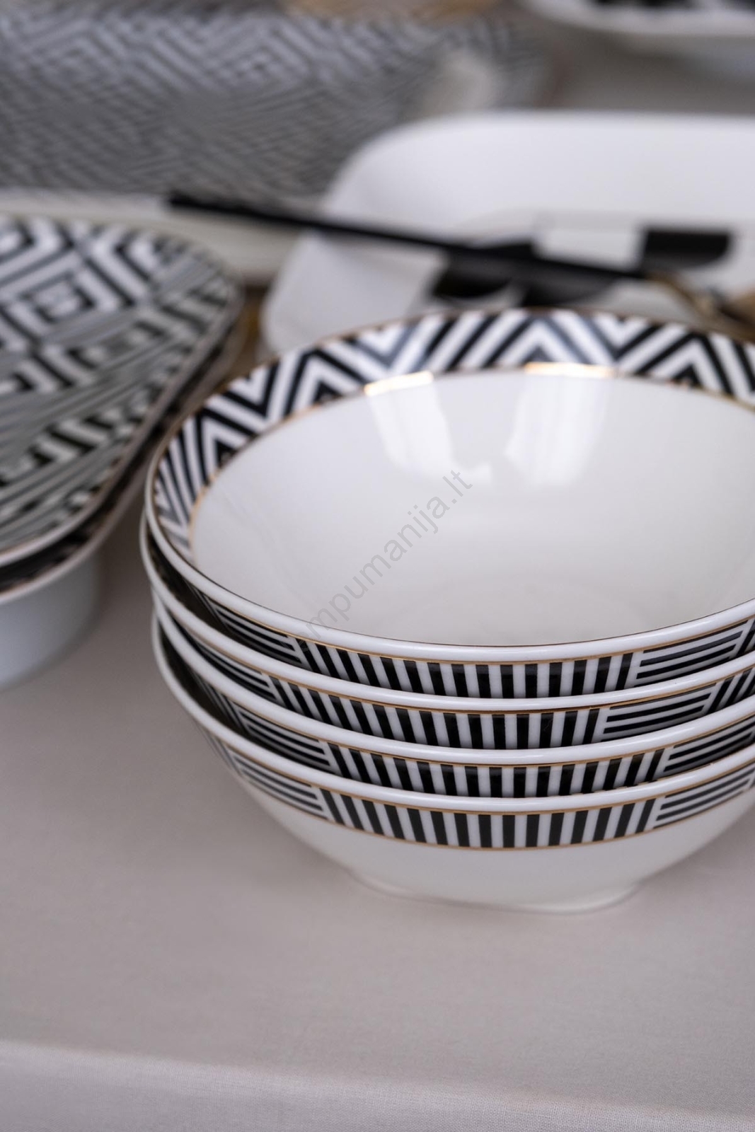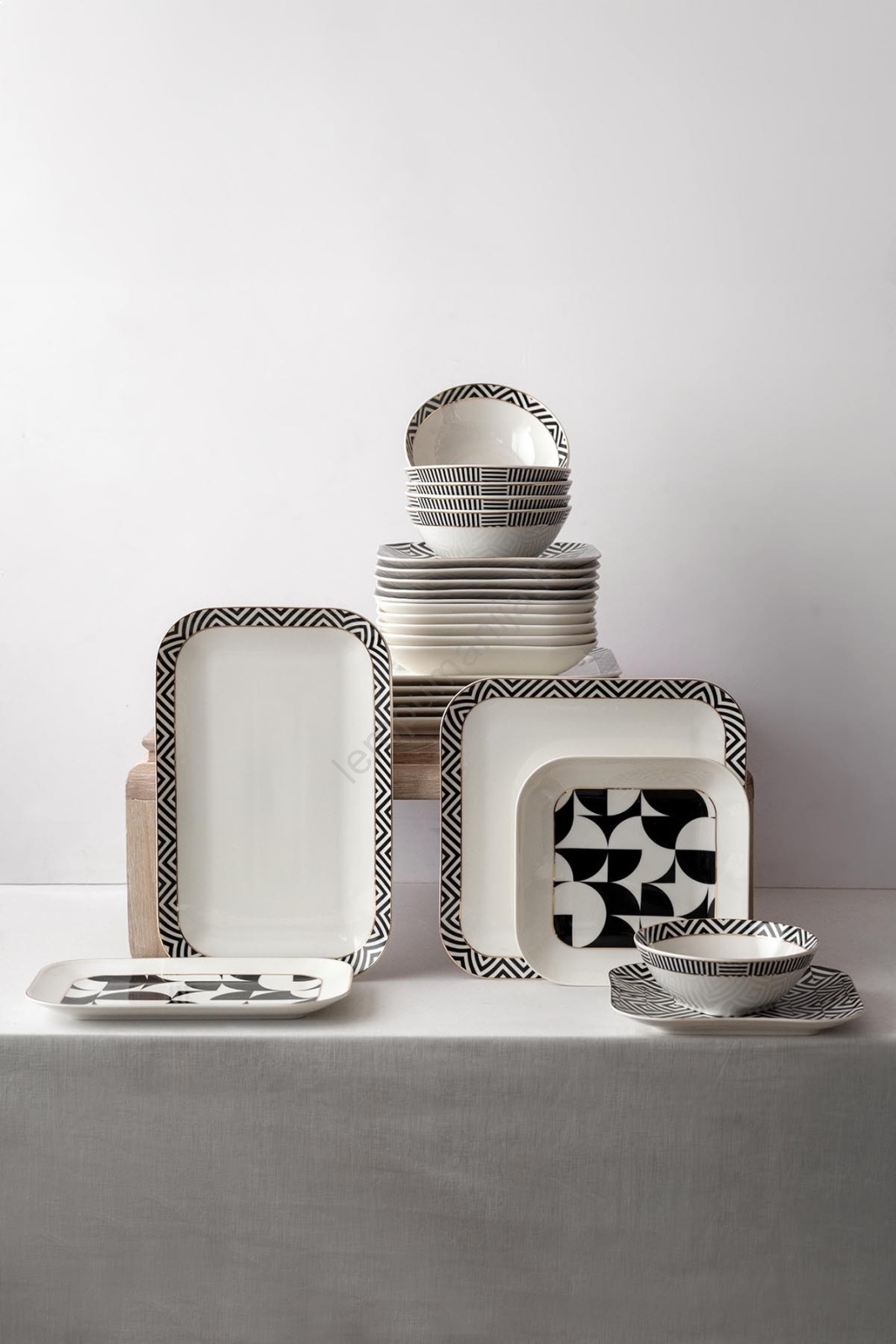 26 dalių stalo indų rinkinys, baltas/juodas, iš porceliano | Lempumanija
