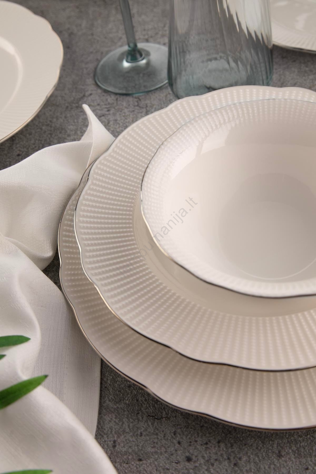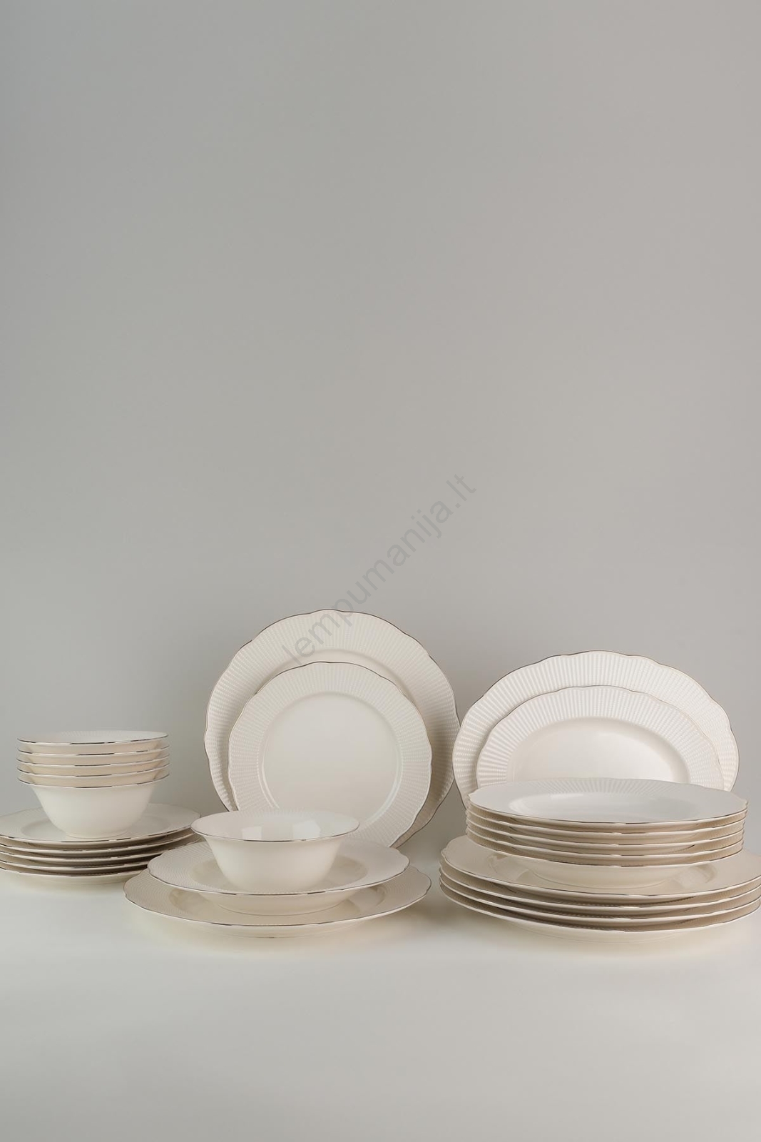 26 dalių stalo indų rinkinys, baltas/sidabrinis/kaulinis porcelianas | Lempumanija