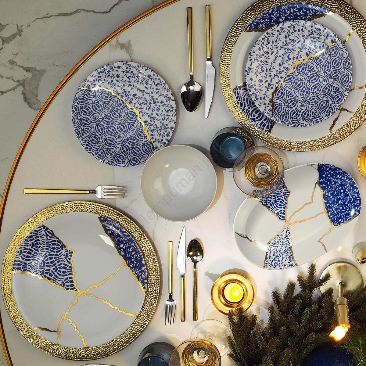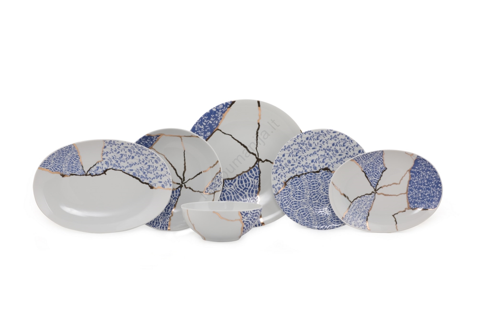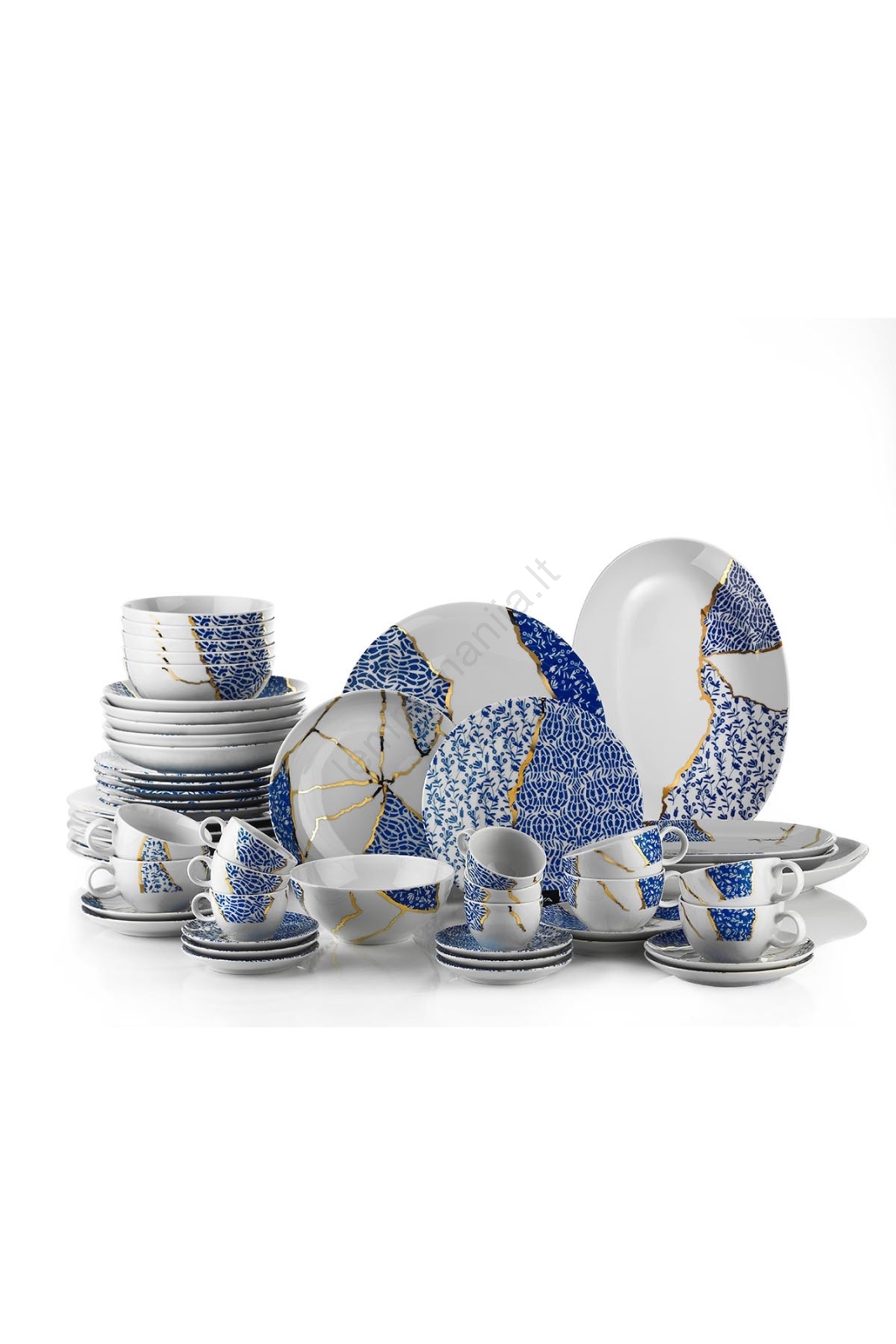 28 dalių porcelianinis indų rinkinys — balta/auksinė/mėlyna | Lempumanija