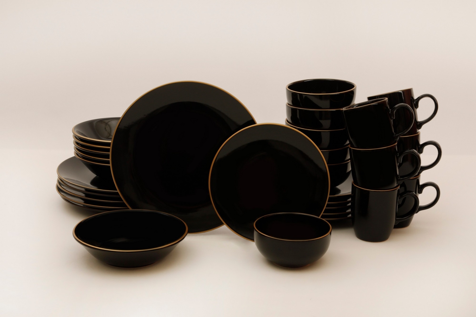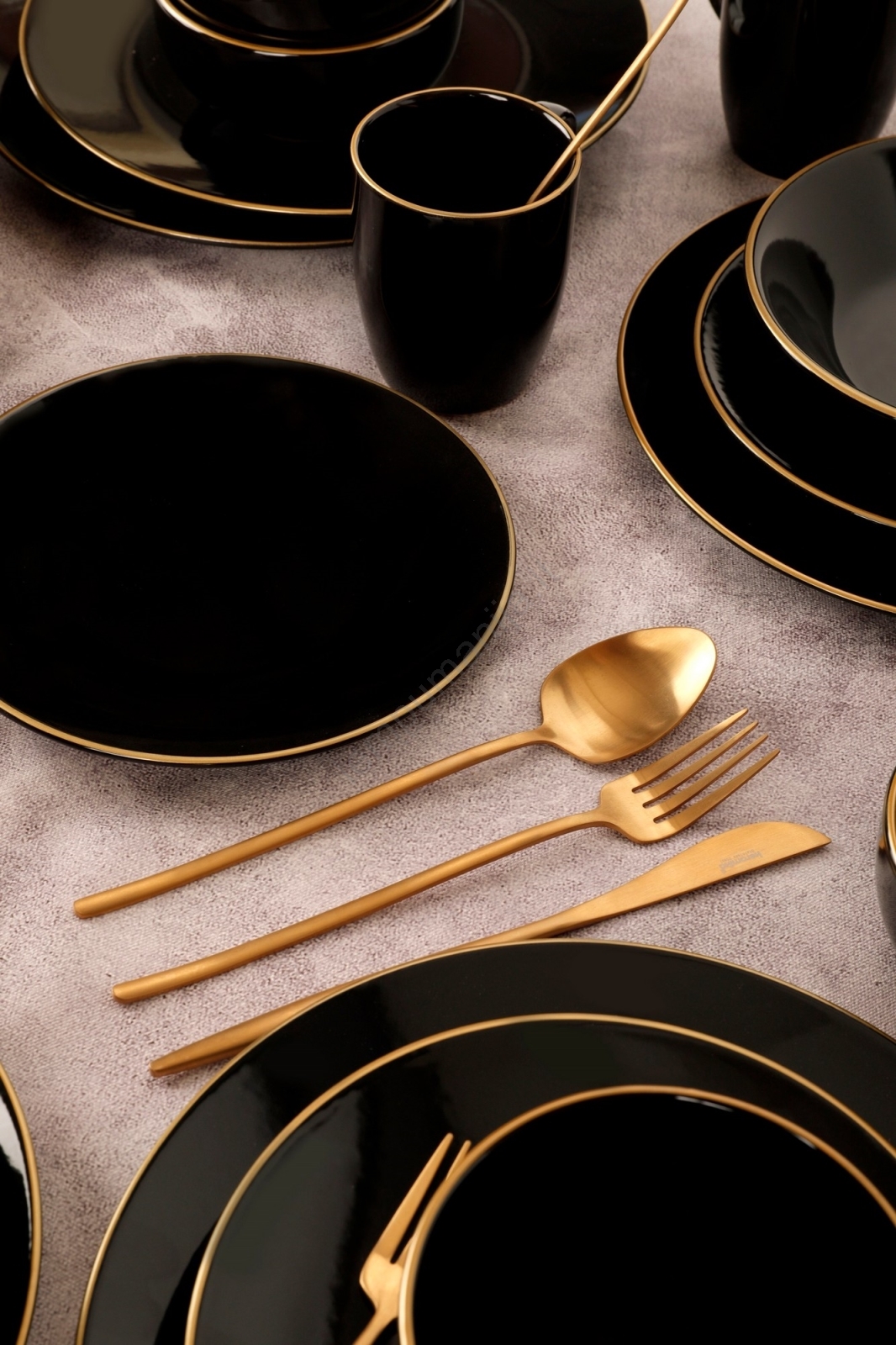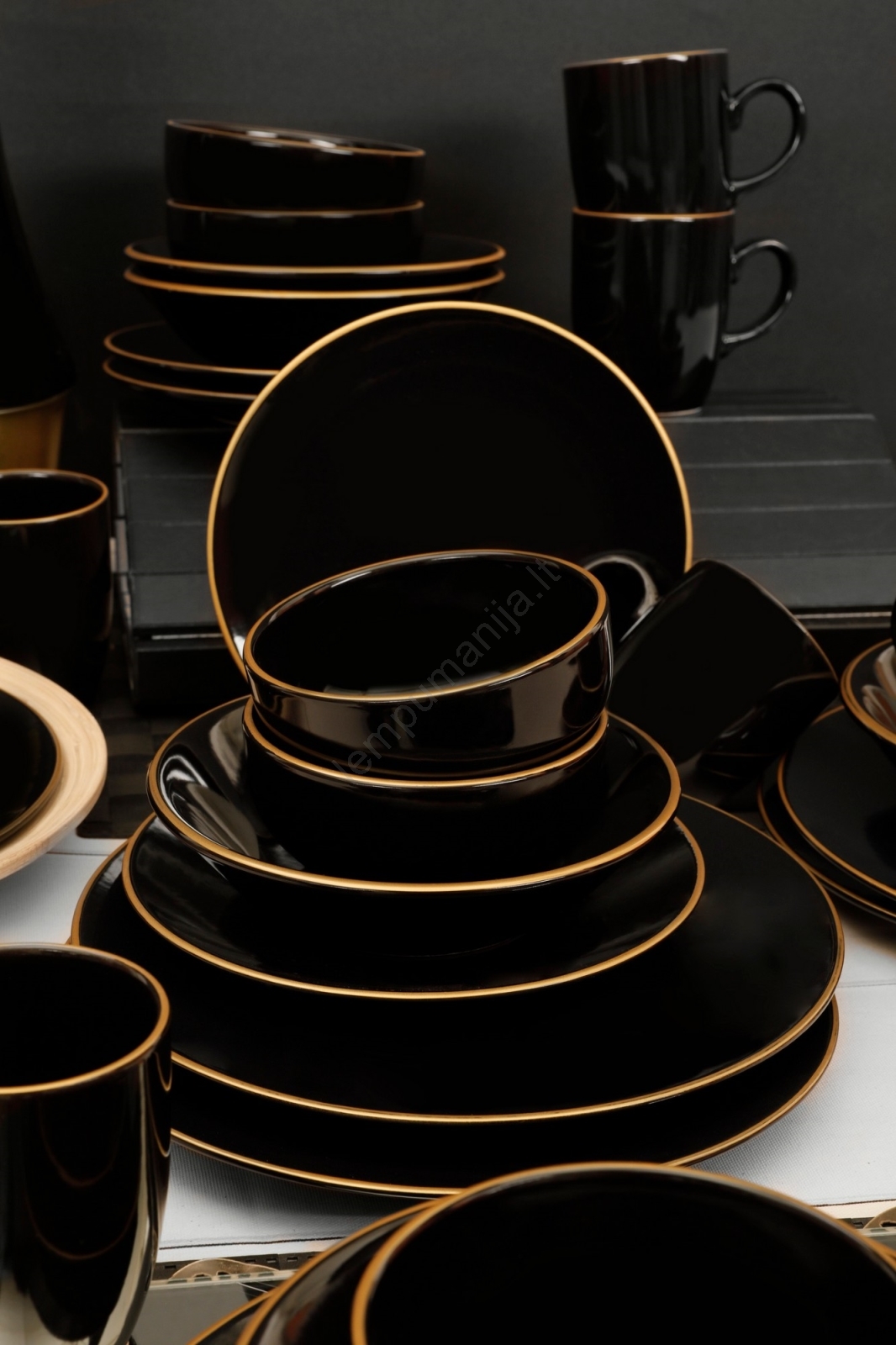 30 dalių stalo indų rinkinys — juodas/auksinis/akmens masės | Lempumanija