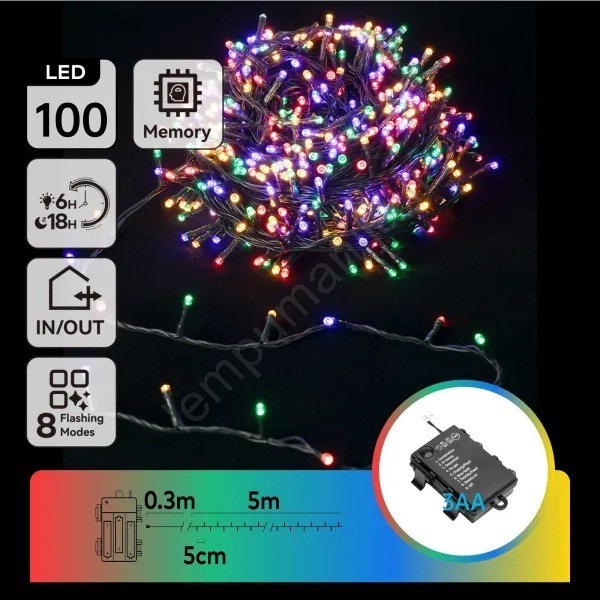 Aigostar - LED lauko kalėdinė girlianda 100xLED/8 apšvietimo režimai 3xAA 5,3 m IP44 daugiaspalvė |