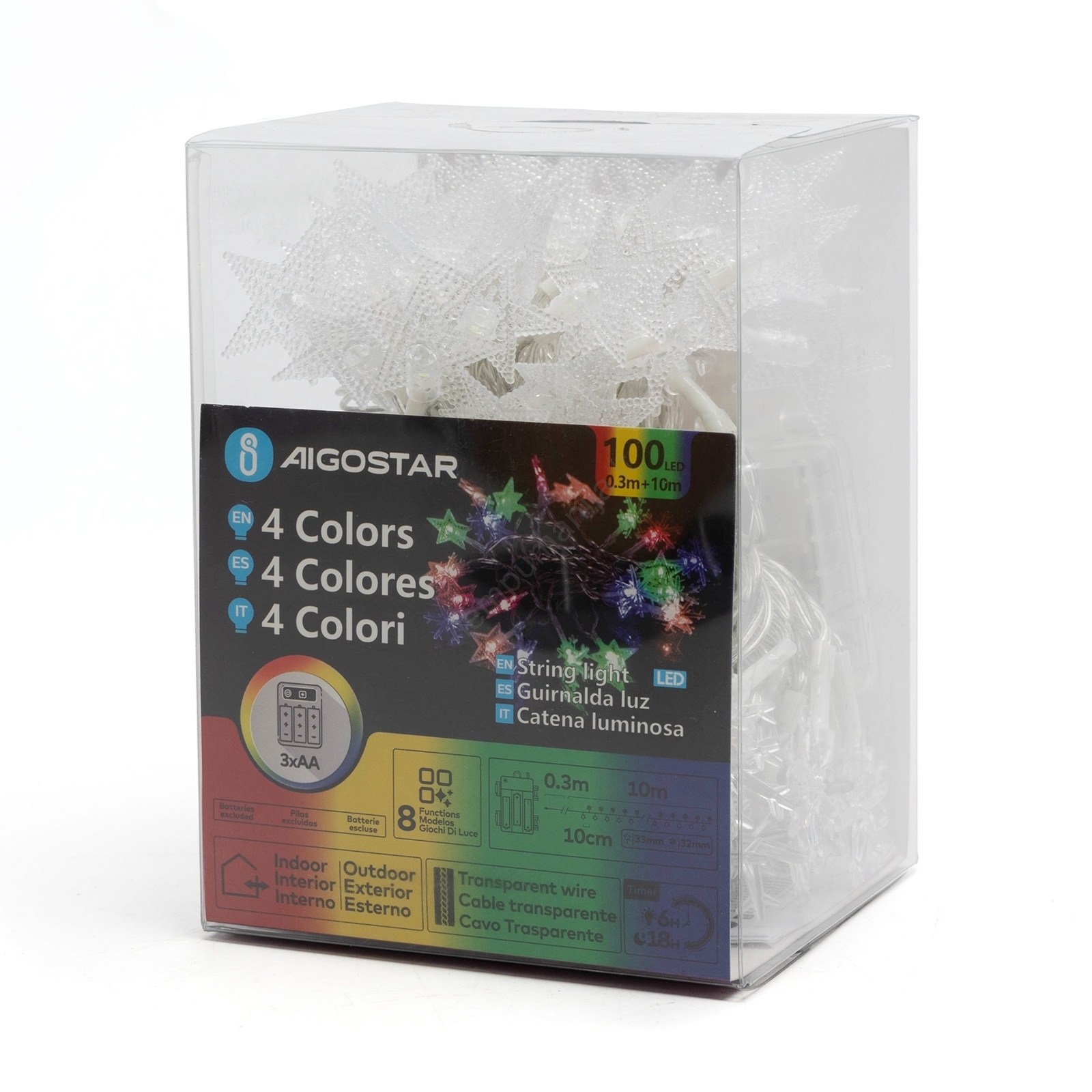 Aigostar - LED RGBY Lauko kalėdinė girlianda 100xLED/8 funkcijų 3xAA 10m IP44 žvaigždės | Lempumanij