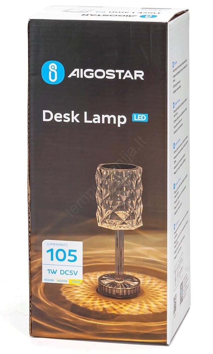 Aigostar - LED įkraunamas stalinis šviestuvas su reguliuojamu šviesos srautu LED/1W/5V 2700/4000/6500K 1800mAh 26 cm