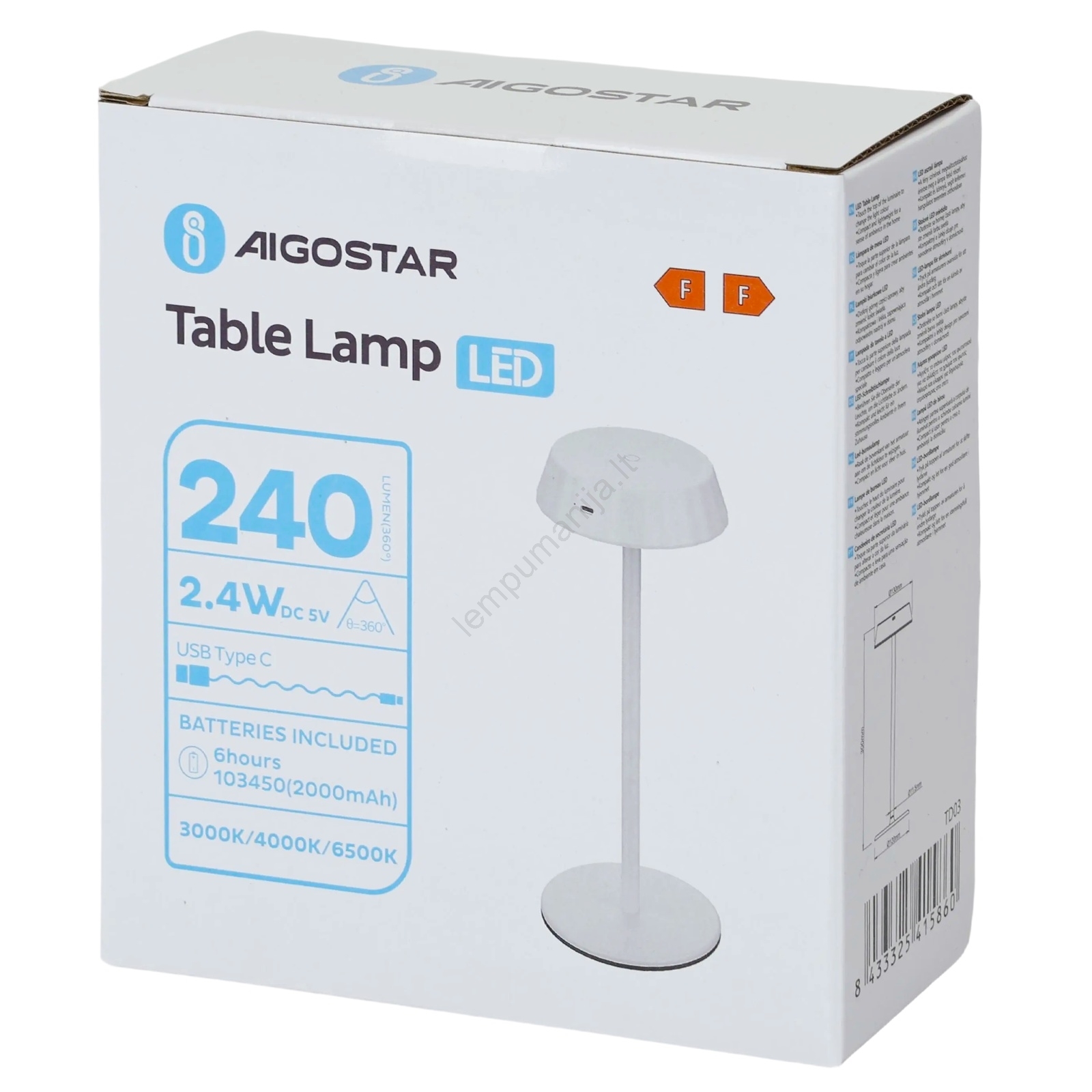 Aigostar - Reguliuojamo ryškumo LED stalinė lempa AMBIENT LED/2,4W/5V 3000-6500K balta