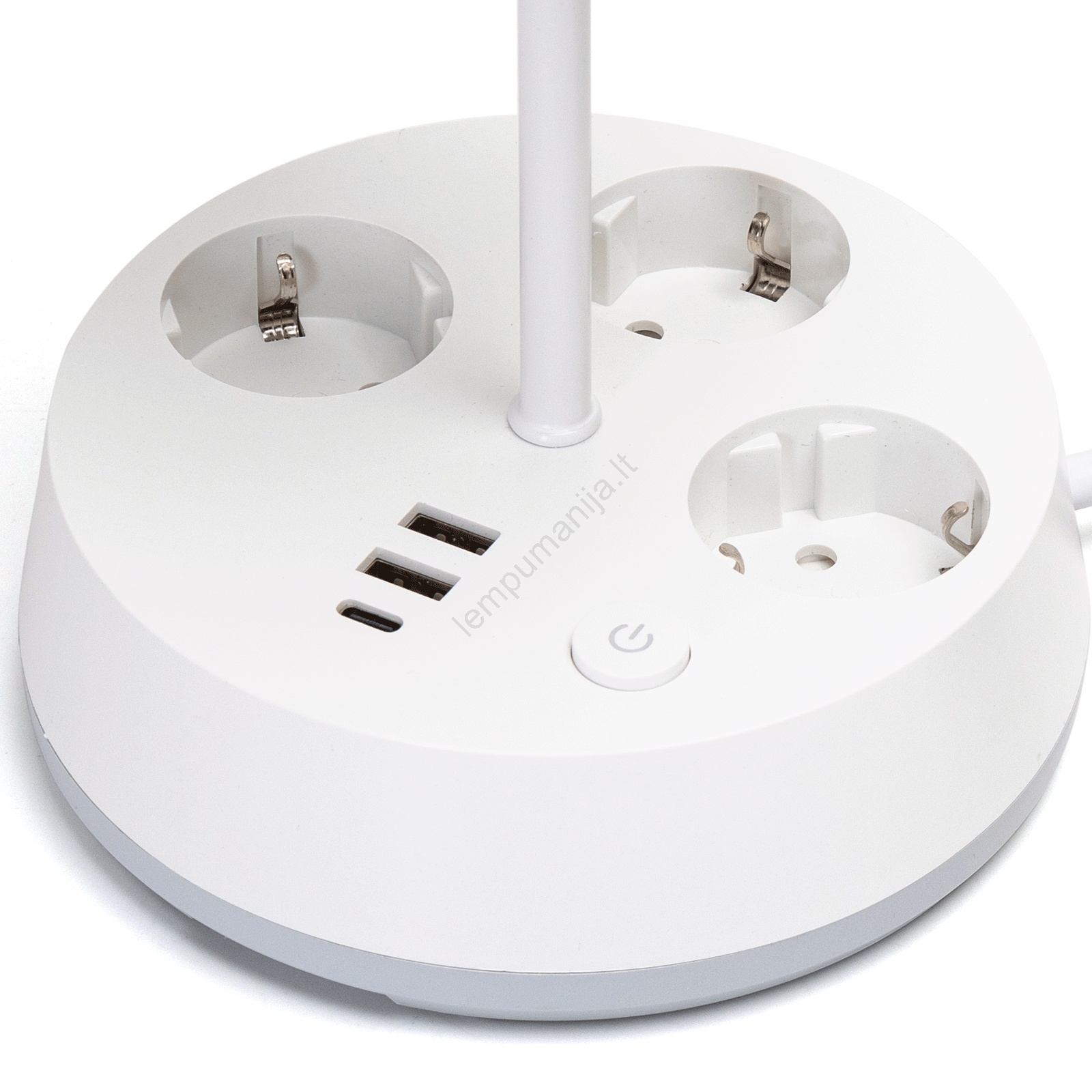 Aigostar - stalinis šviestuvas su elektros lizdais ir USB prievadais 1xE27/60W/230V baltas