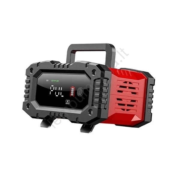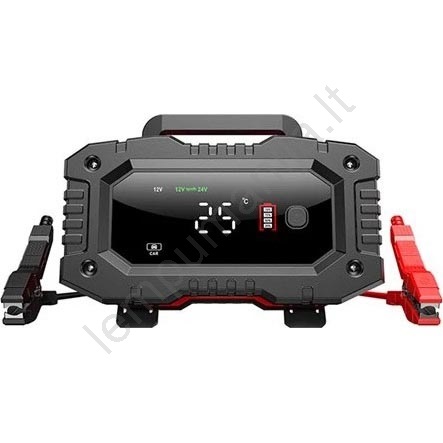 • Siūlo septynis įkrovimo režimus: 12V AGM + LiFePO4, 24V AGM + LiFePO4, 12V automobiliui, 24V automobiliui, 12V motociklui, 24V motociklui ir atkūrimo režimą sulfatavusių arba giliai išsikrovusių akumuliatorių regeneracijai.