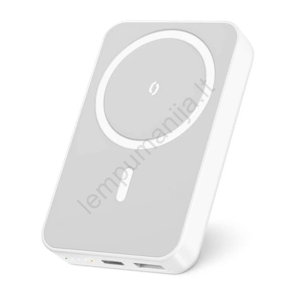 • Dėl Qi technologijos ir MagSafe funkcijos pakanka tiesiog priglausti powerbanką prie telefono, telefonas pradės pats įsikrauti.