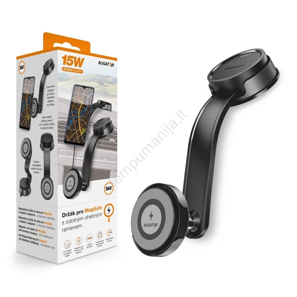 Aligator AMS07BK - Automobilinis telefono laikiklis su lanksčiu MagSafe laikikliu, juodas | Lempuman