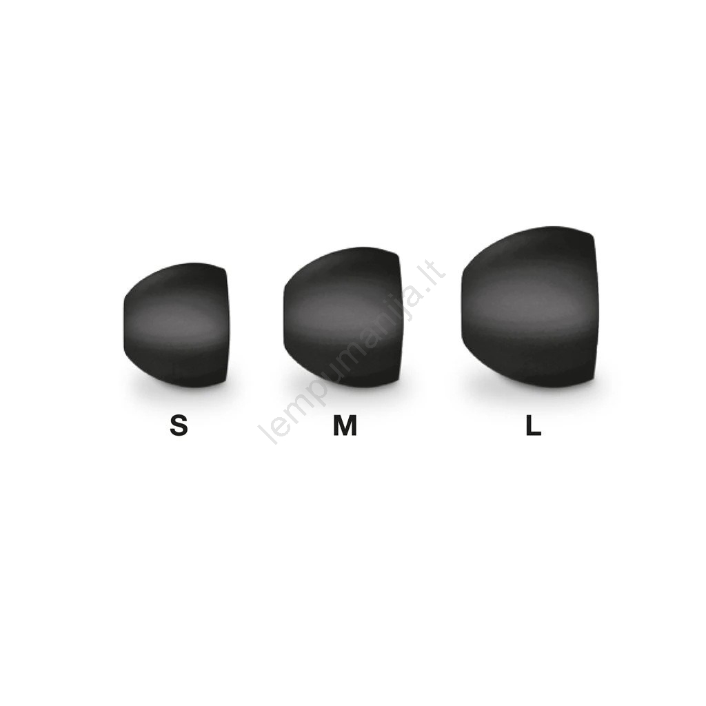 • Komplekte: ausinės, 3 dydžių ausų antgaliai, USB įkrovimo laidas.
