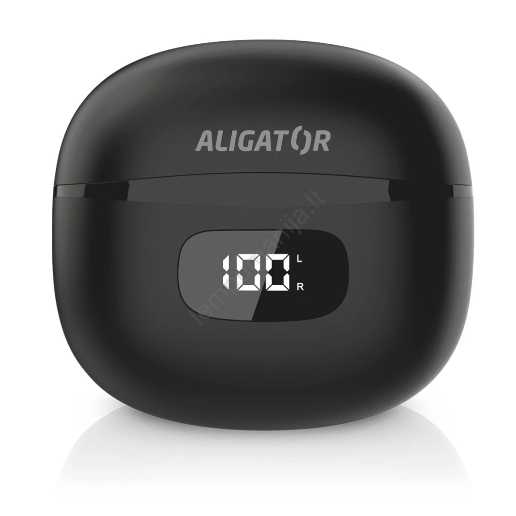 Aligator TWS08BK - belaidės ausinės su aktyviu triukšmo slopinimu (ANC), 200 mAh + 2x 30 mAh, IP40, juodos