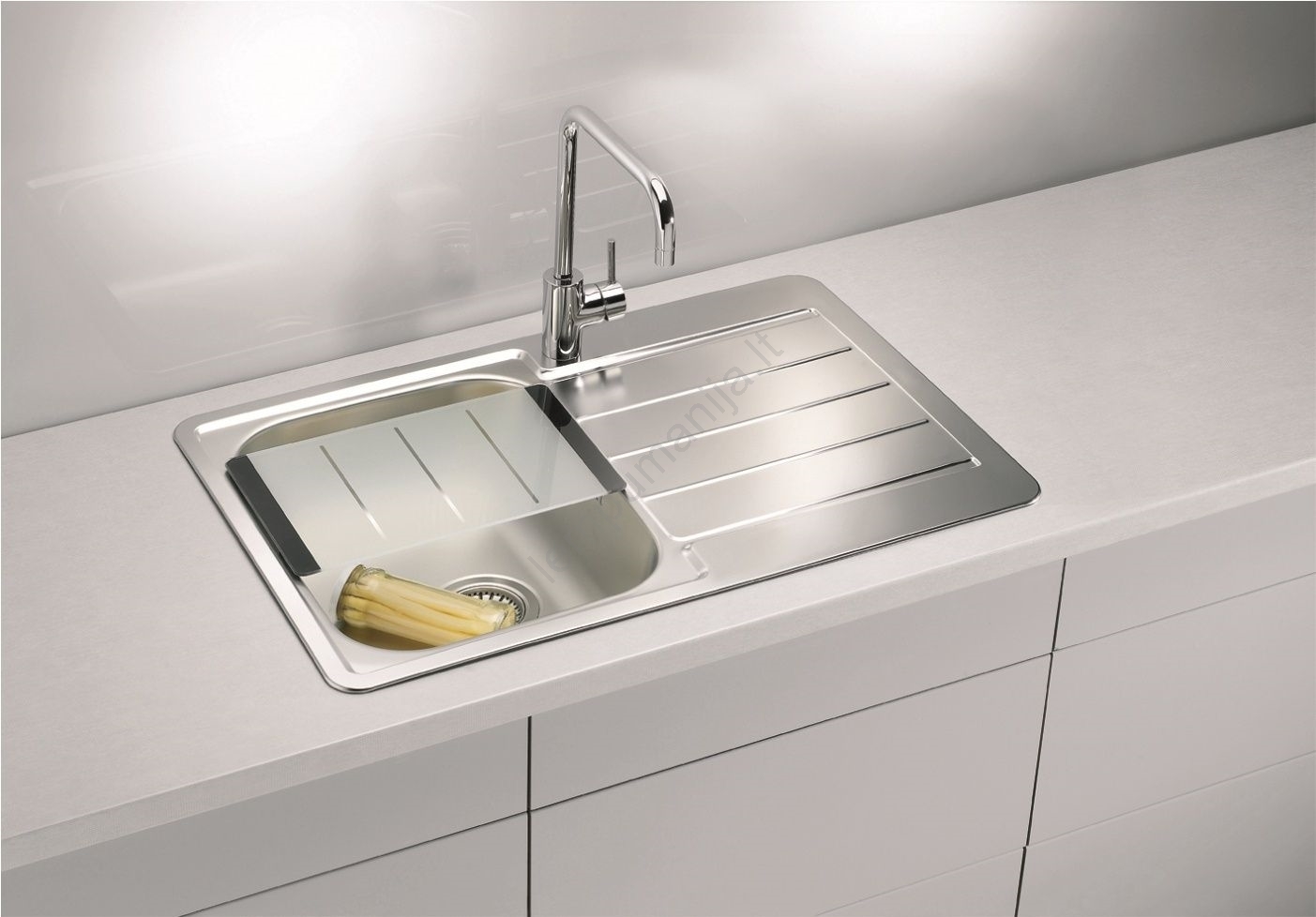 • Kriauklė turi vieną didelį dubenį, suteikiantį pakankamai erdvės.
