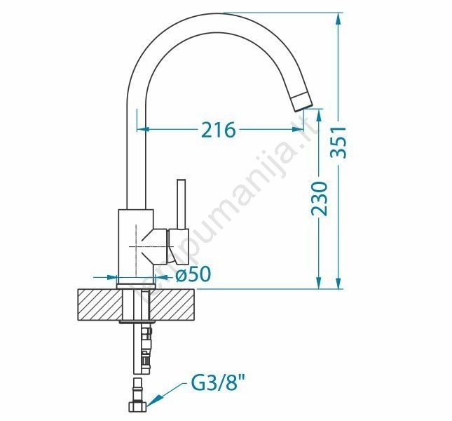 • Vienos svirties virtuvinis maišytuvas su dideliu slėgiu ir pasukamu snapu.