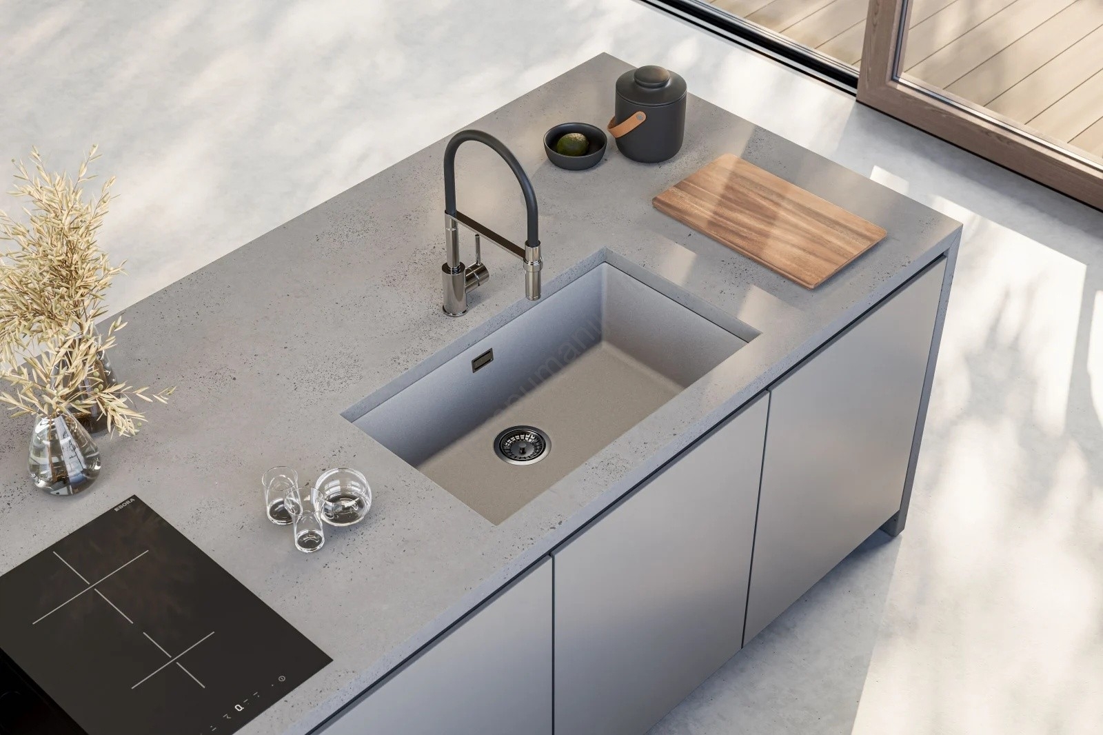 • Virtuvinė kriauklė su moderniu dizainu.
