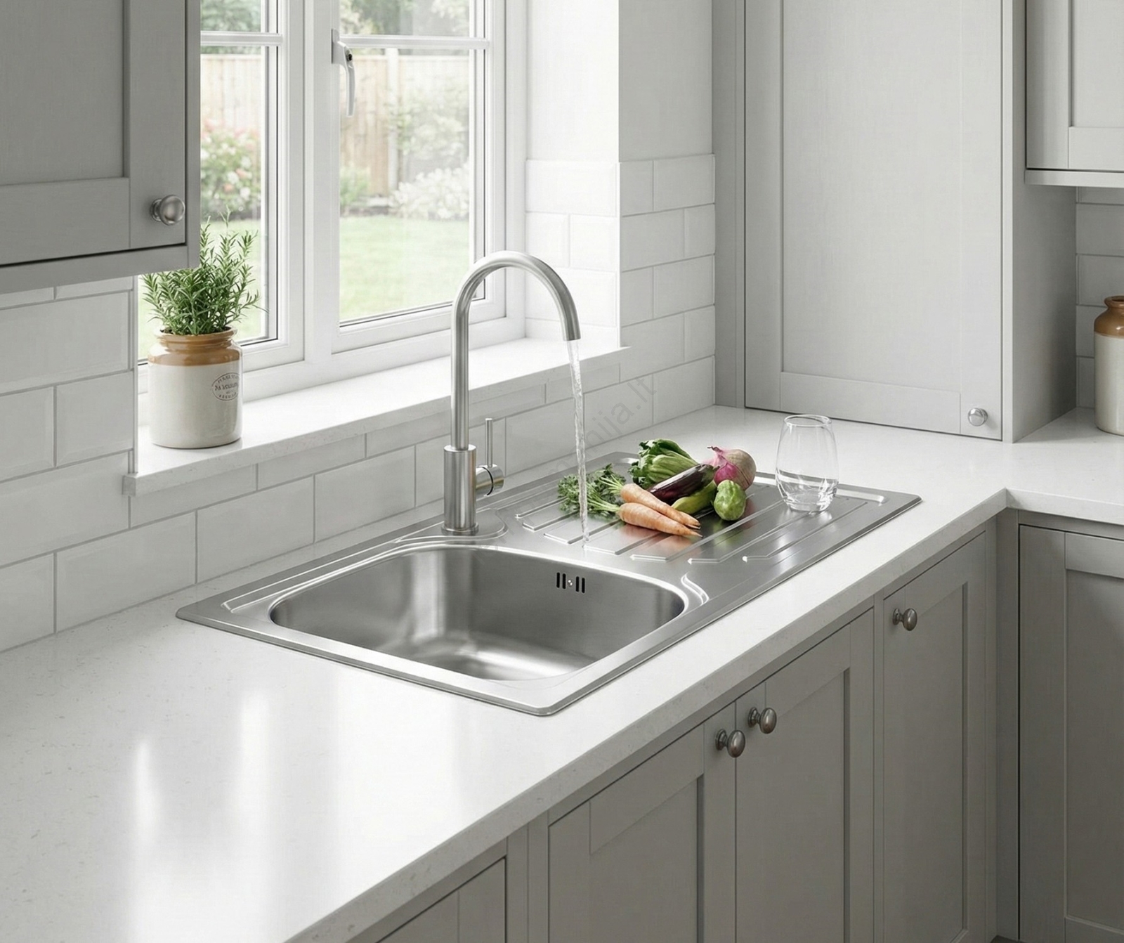 ALVEUS - virtuvinė kriauklė BASIC 78x43,5 cm + kriauklės maišytuvas VIOLA 36,7 cm iš nerūdijančio pl