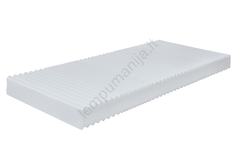 Profiliuotas sluoksnis tolygiai paskirsto kūno spaudimą, sumažina sąnarių apkrovą ir palaiko taisyklingą stuburo padėtį miego metu.