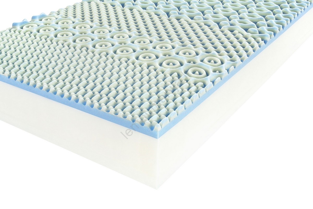• Viršutinė dalis su 3D atminties putomis derinyje su hibridine, šaltai formuota puta – įskaitant 7 zonų gerovės profilį, o apatinis sluoksnis Flexi šaltai formuota puta su masažine profilizacija.