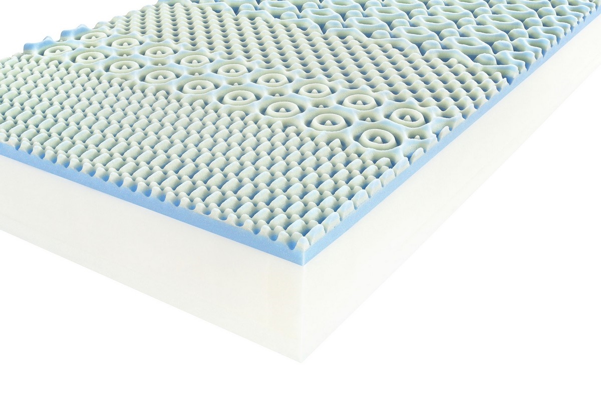 • Viršutinė plokštė su 3D atminties putomis, derinama su hibridine šaltai formuota puta – įskaitant 7 zonų sveikatinimo profilį, o apačia – Flexi šaltai formuotos putos su masažiniu profiliavimu.