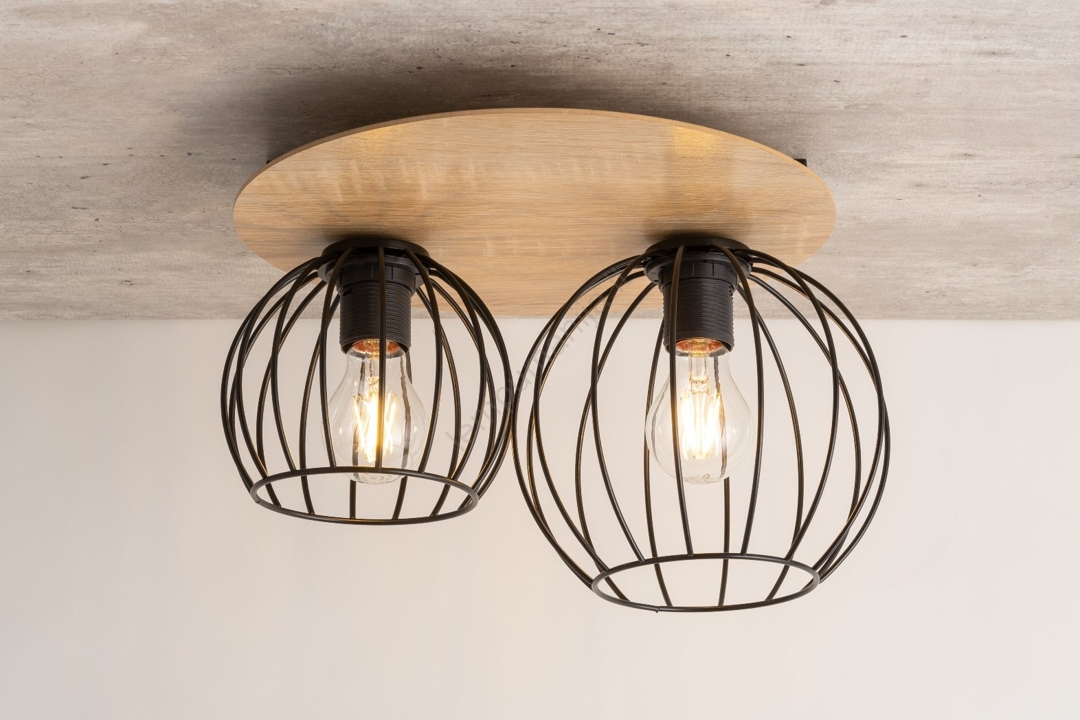 Ant pagrindo montuojamas sietynas CYBER 2xE27/60W/230V medis/juodas | Lempumanija