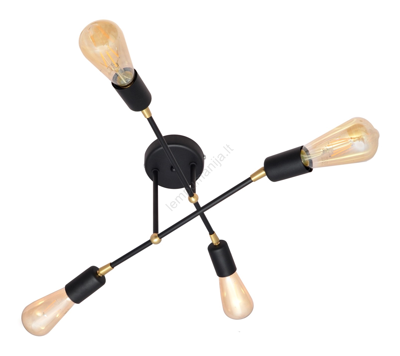 Ant paviršiaus montuojamas sietynas ROSETTE 4xE27/15W/230V juodas/auksinis pasižymi gražiu ir funkcionaliu dizainu.  Šviestuvui tinka lemputė su E27 dangteliu. Čia galite įsigyti kitų lempučių palankiomis kainomis. Įdomus jūsų namų priedas.