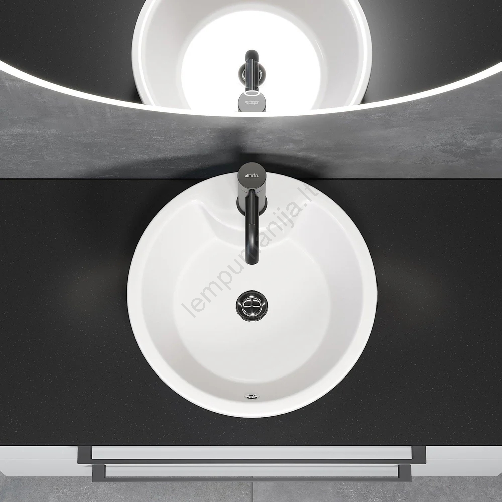 • Praustuvas skirtas montuoti ant stalviršio, todėl jį galima lanksčiai montuoti ir derinti su įvairių tipų vonios stalviršiais.
