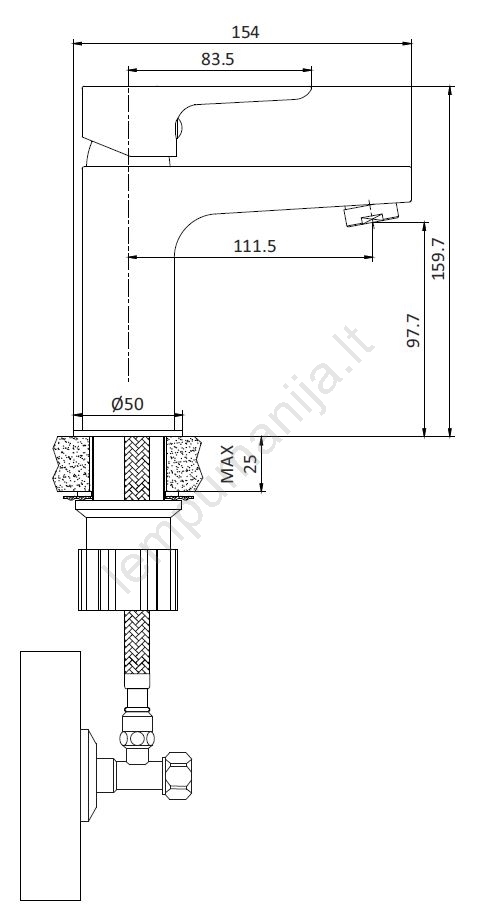 • Vienos svirties maišytuvas, leidžiantis lengvai reguliuoti temperatūrą ir vandens srautą.
