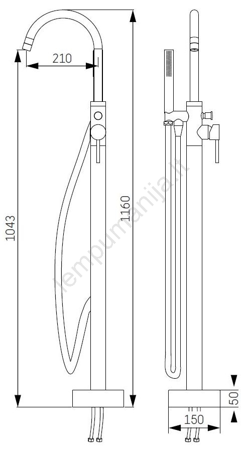 Laisvai stovintai voniai skirtas 116 cm komplektas su maišytuvu, iš žalvario | Lempumanija