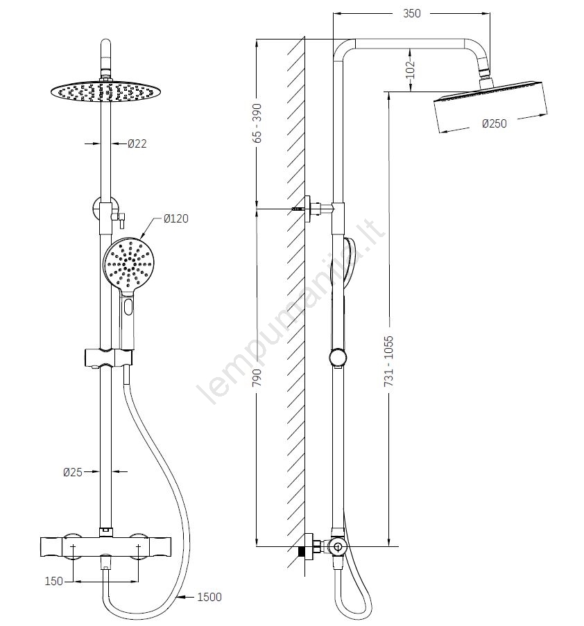 BATH DELUXE 31-120-05-70-00 - Dušo komplektas su DRAGOR termostatiniu vožtuvu, š | Lempumanija