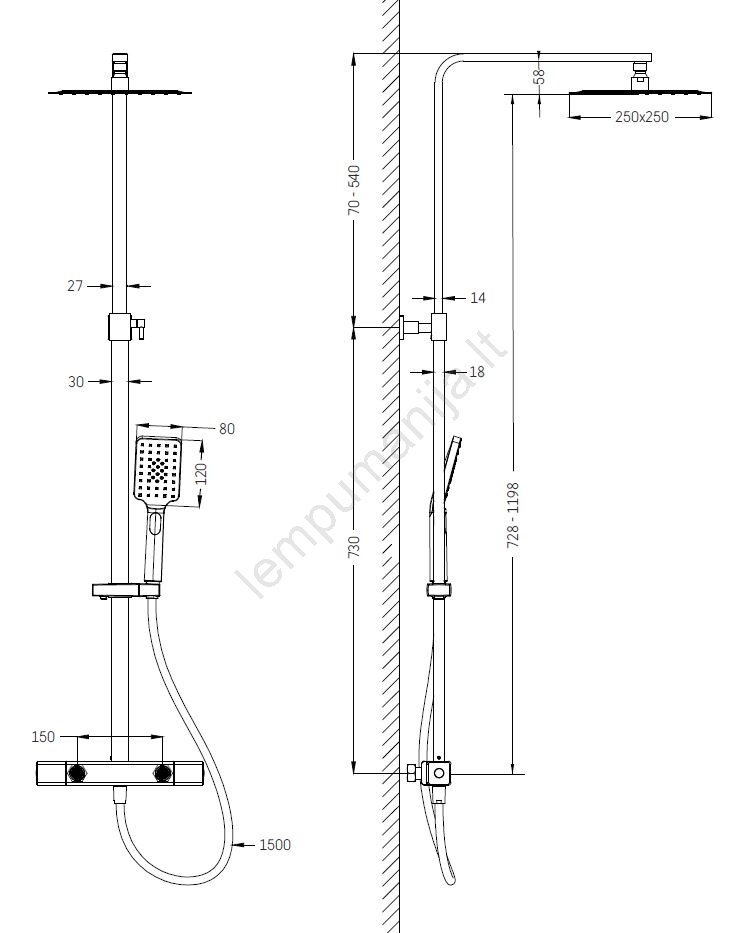 • Rinkinį sudaro termostatinis maišytuvas iš masyvaus žalvario.