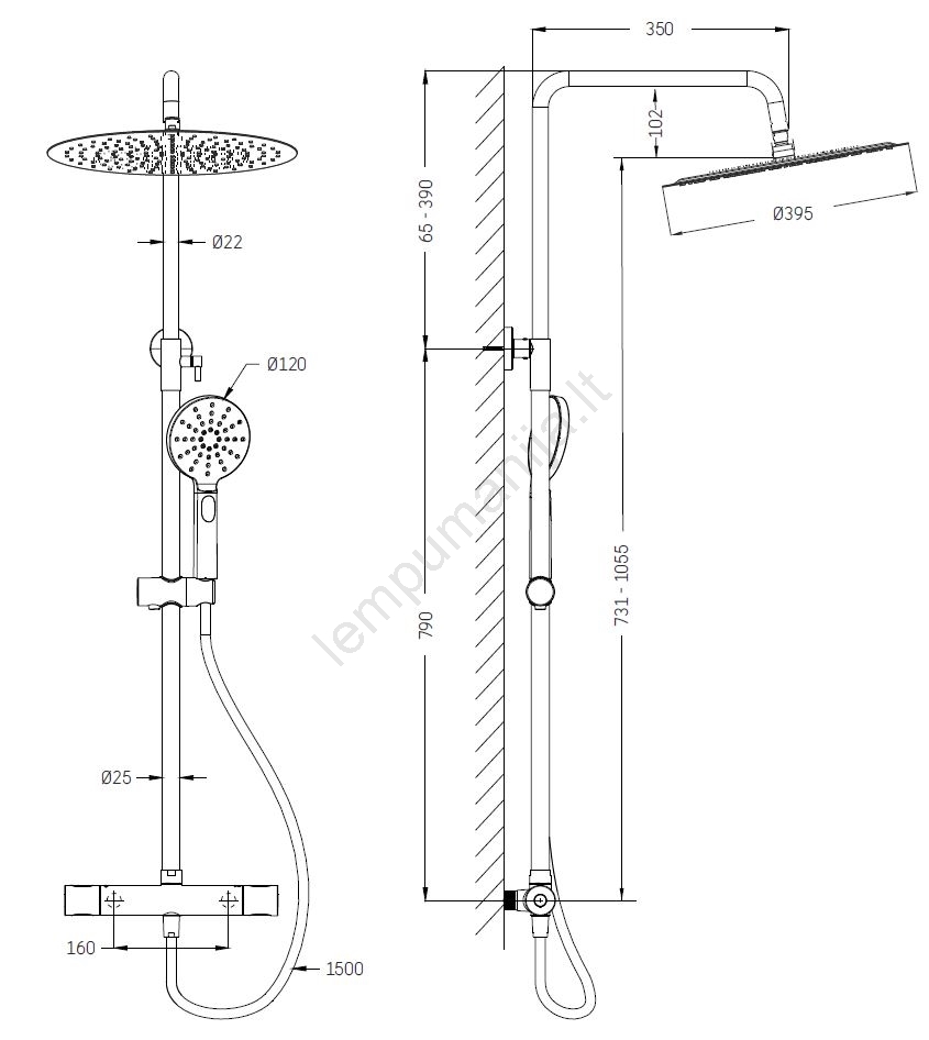 • Komplektą sudaro termostatinis maišytuvas iš tvirto žalvario.