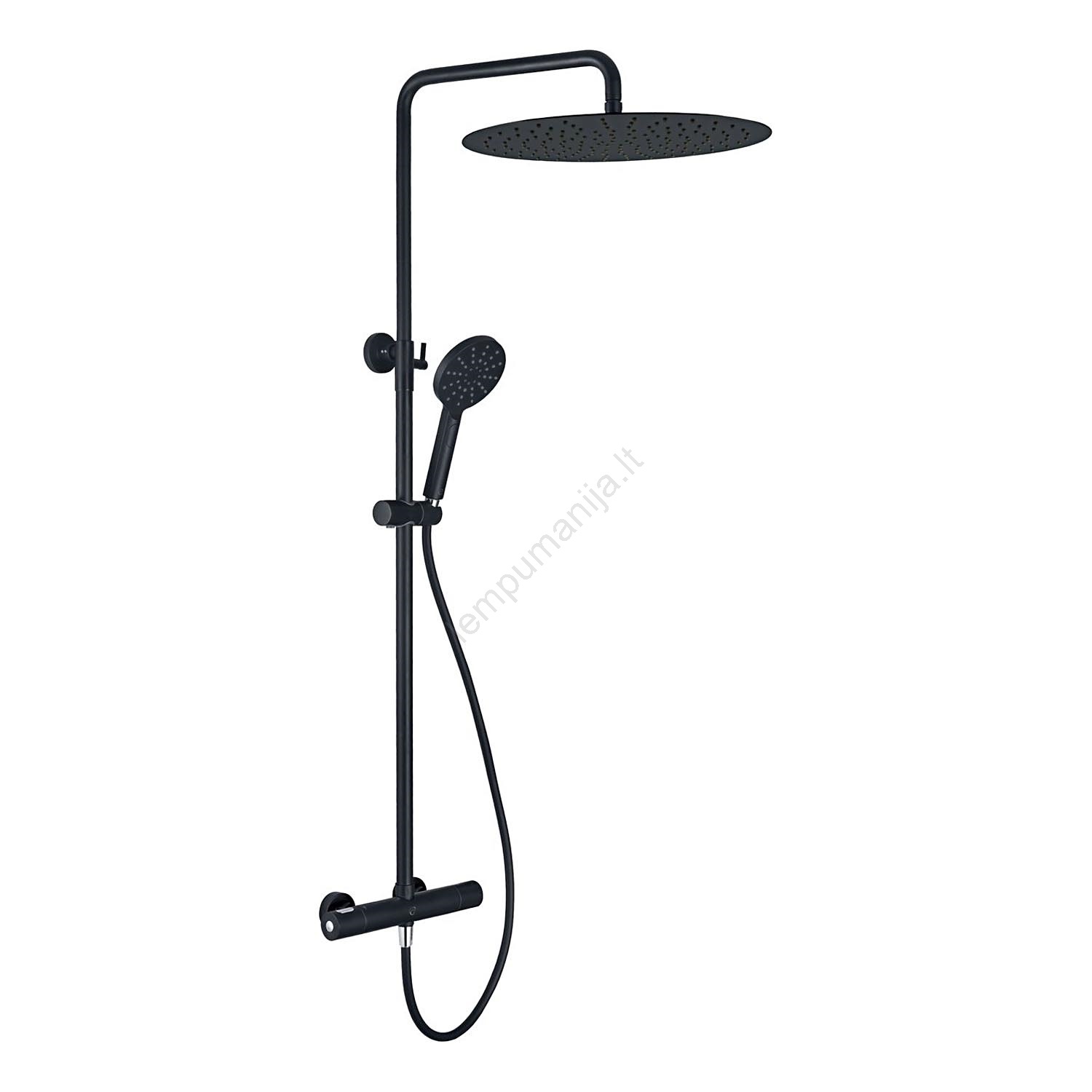 Dušo komplektas su termostatiniu maišytuvu DRAGOR matinė juoda