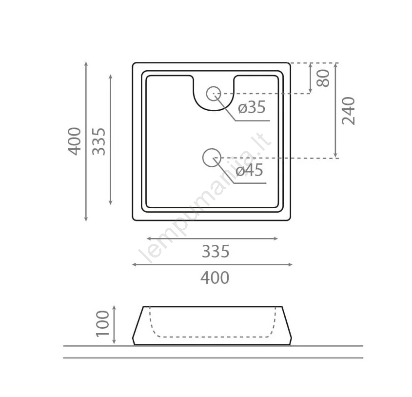 • Pakuotėje yra praustuvas be sifono ir maišytuvo.