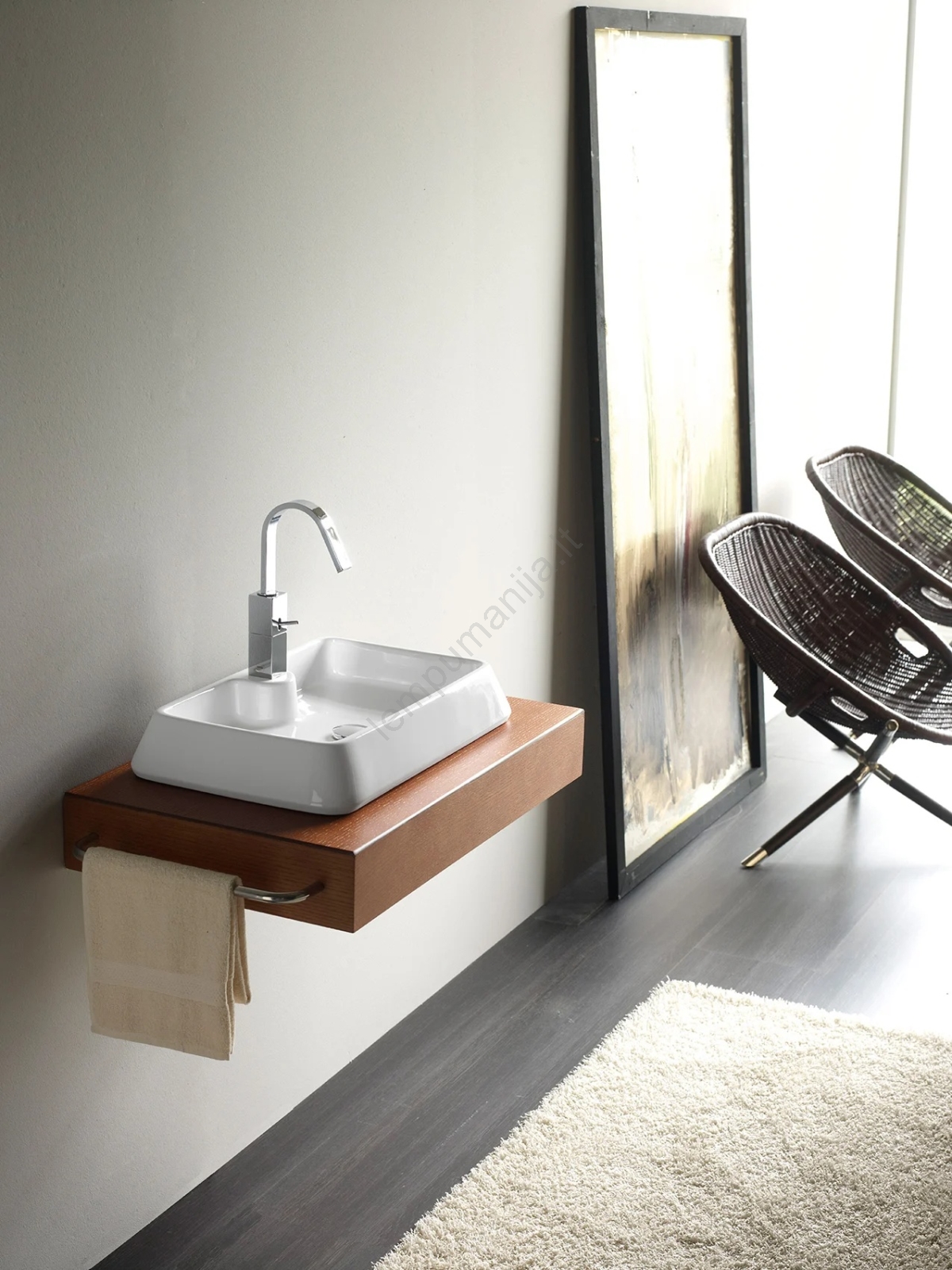 • Modernus ir elegantiškas praustuvas be perpildymo angos.