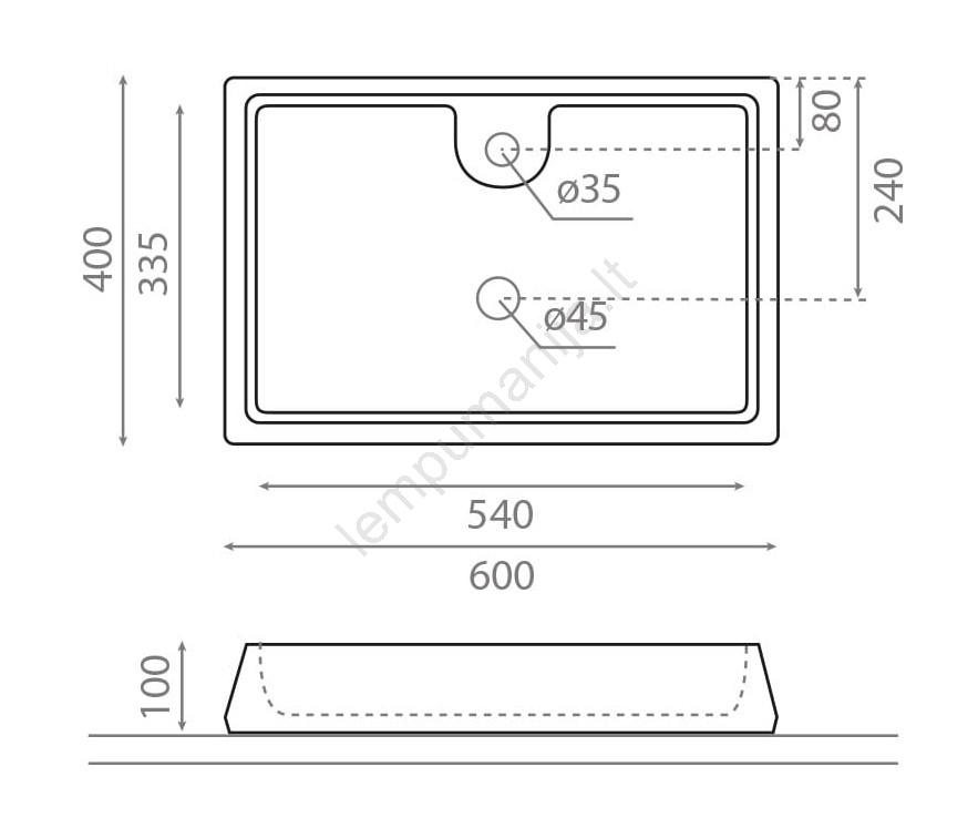 • Pakuotėje yra praustuvas; sifonas ir maišytuvas neįtraukti.